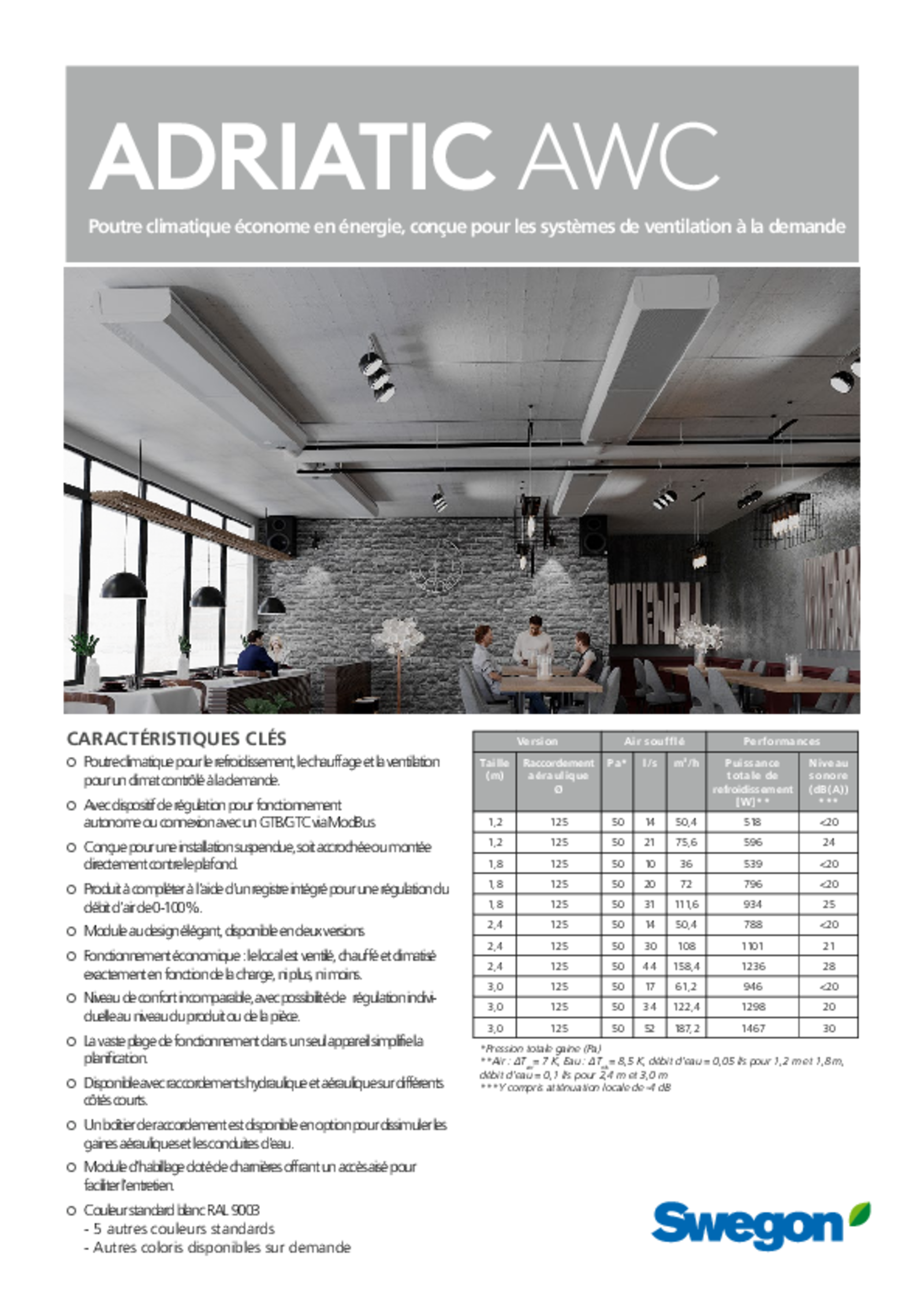 • Poutre climatique pour le refroidissement, le chauffage et la ventilation pour un climat contrôlé à la demande