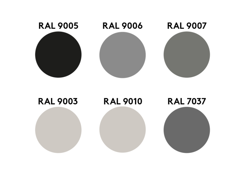 Pour une finition totalement personnalisée, toutes les autres couleurs RAL ou NCS sont disponibles sur commande.