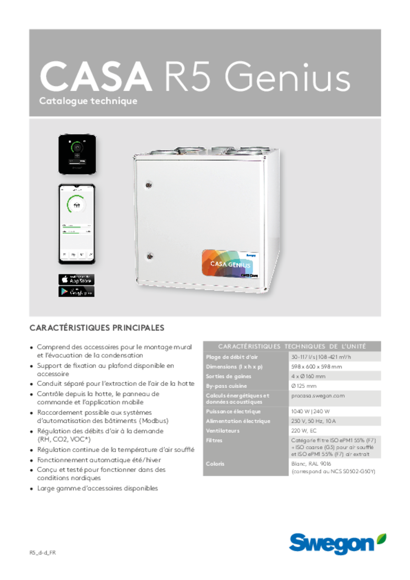 | Swegon CASA R5 Catalogue technique (pdf 6.56MB) | GENIUS | Brochure technique | |