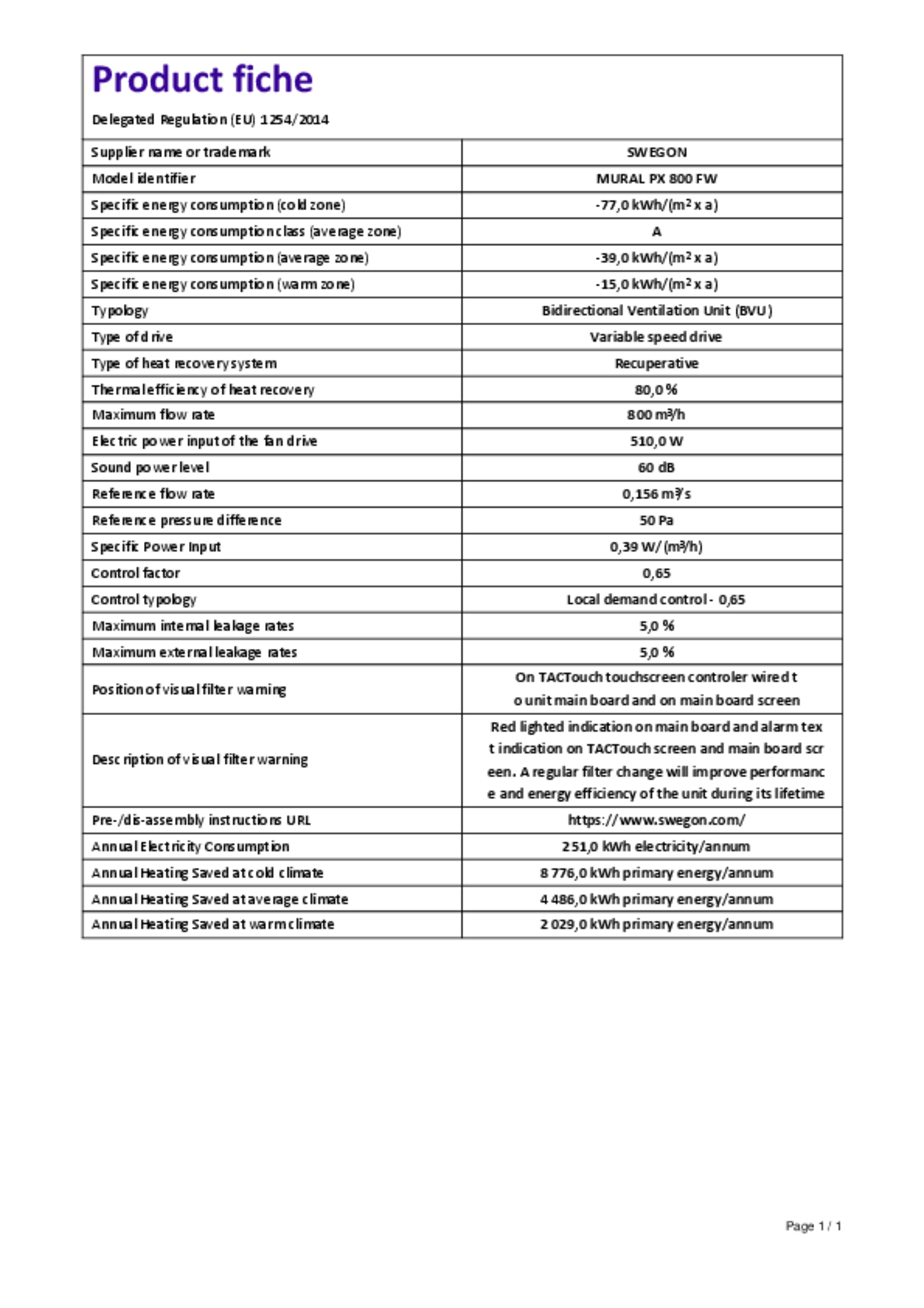 | MURAL PX 800 - Fiche d'information produit (pdf 46.45kB) | MURAL PX 800 | Brochure technique | |