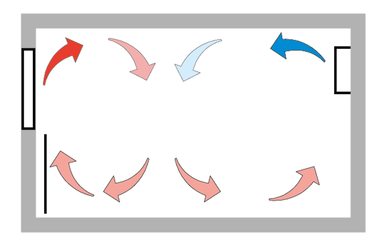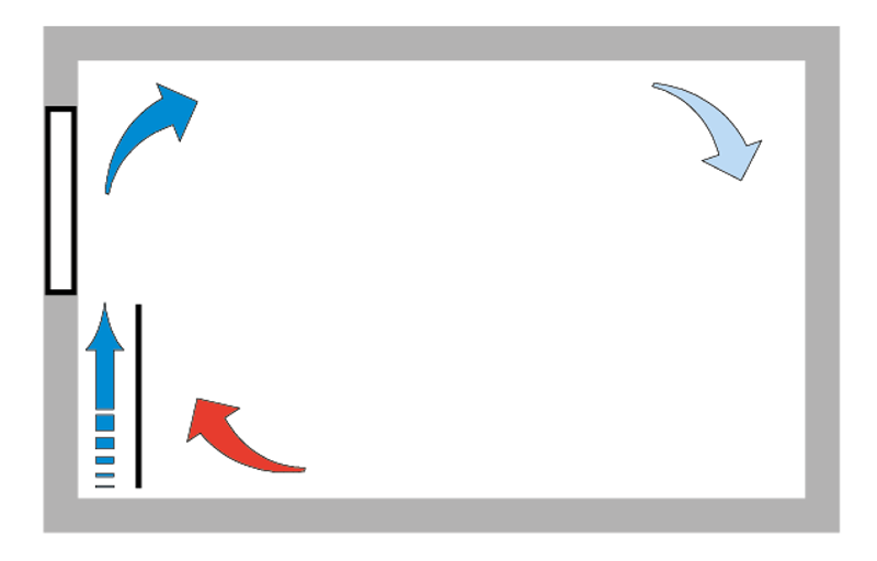 En utilisant cette méthode, il est important d'être précis dans la définition de la zone occupée. Dans les cas où les courants d'air descendants le long des murs sont acceptables, ce principe présente des avantages évidents. Faites attention aux courants de convection provenant de la paroi de la fenêtre.