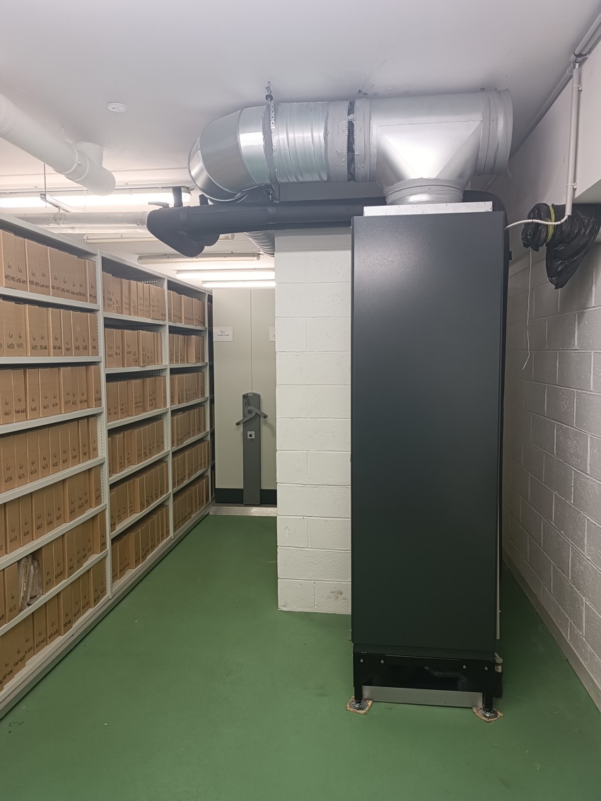 Bien souvent situés en sous-sol et dépourvus de fenêtres, les espaces de stockage présentent la particularité d’absence de charges thermiques. Afin que l’armoire puisse maîtriser les conditions d’ambiance de stockage, notamment la gestion de l’hygrométrie, l’ajout d’une charge thermique artificielle à l’aide de batteries électriques (ex. convecteurs) peut s’avérer indispensable.