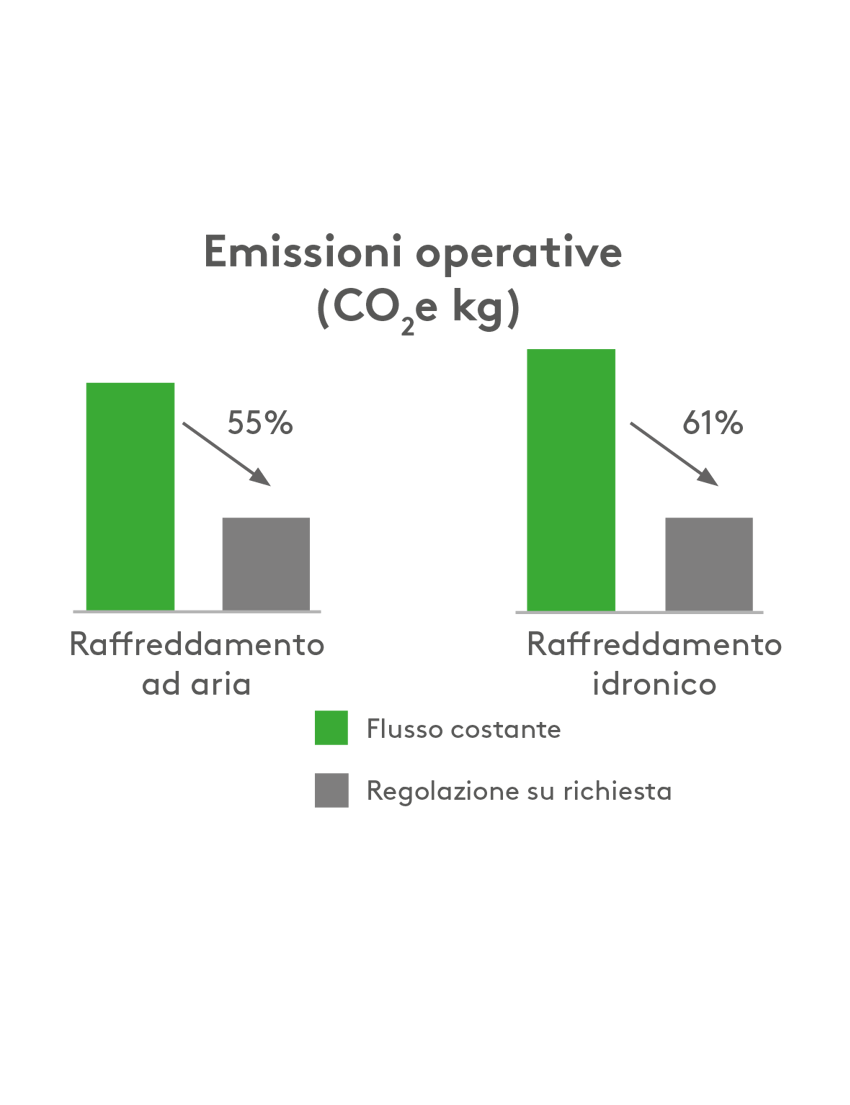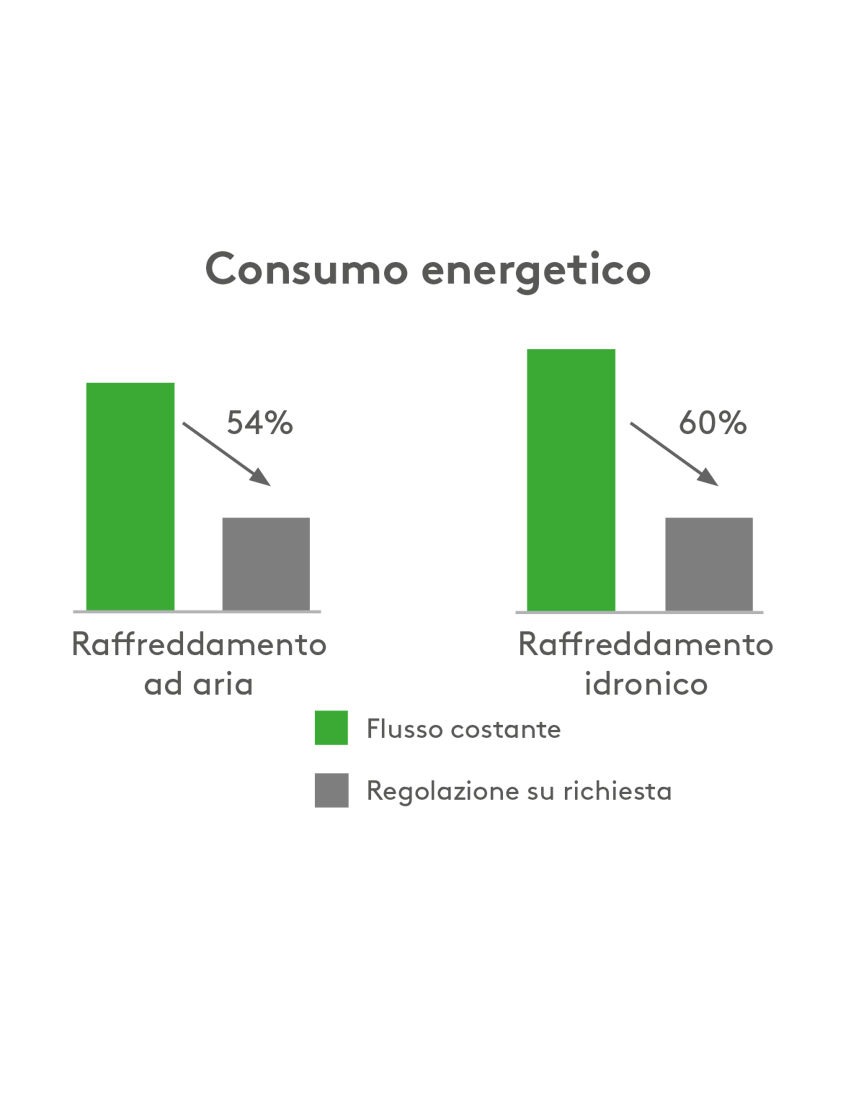 Gli edifici sono responsabili di una fetta considerevole di tutto il consumo energetico, dove i fattori come riscaldamento, raffreddamento e ventilazione costituiscono la parte maggiore. La ventilazione regolabile su richiesta è la chiave per ridurre i consumi energetici. Investendo in una climatizzazione interna su richiesta si possono ottenere notevoli risparmi di energia. Con WISE è possibile seguire le performance effettive dell’edificio durante il funzionamento, anche in remoto, e risparmiare energia:​