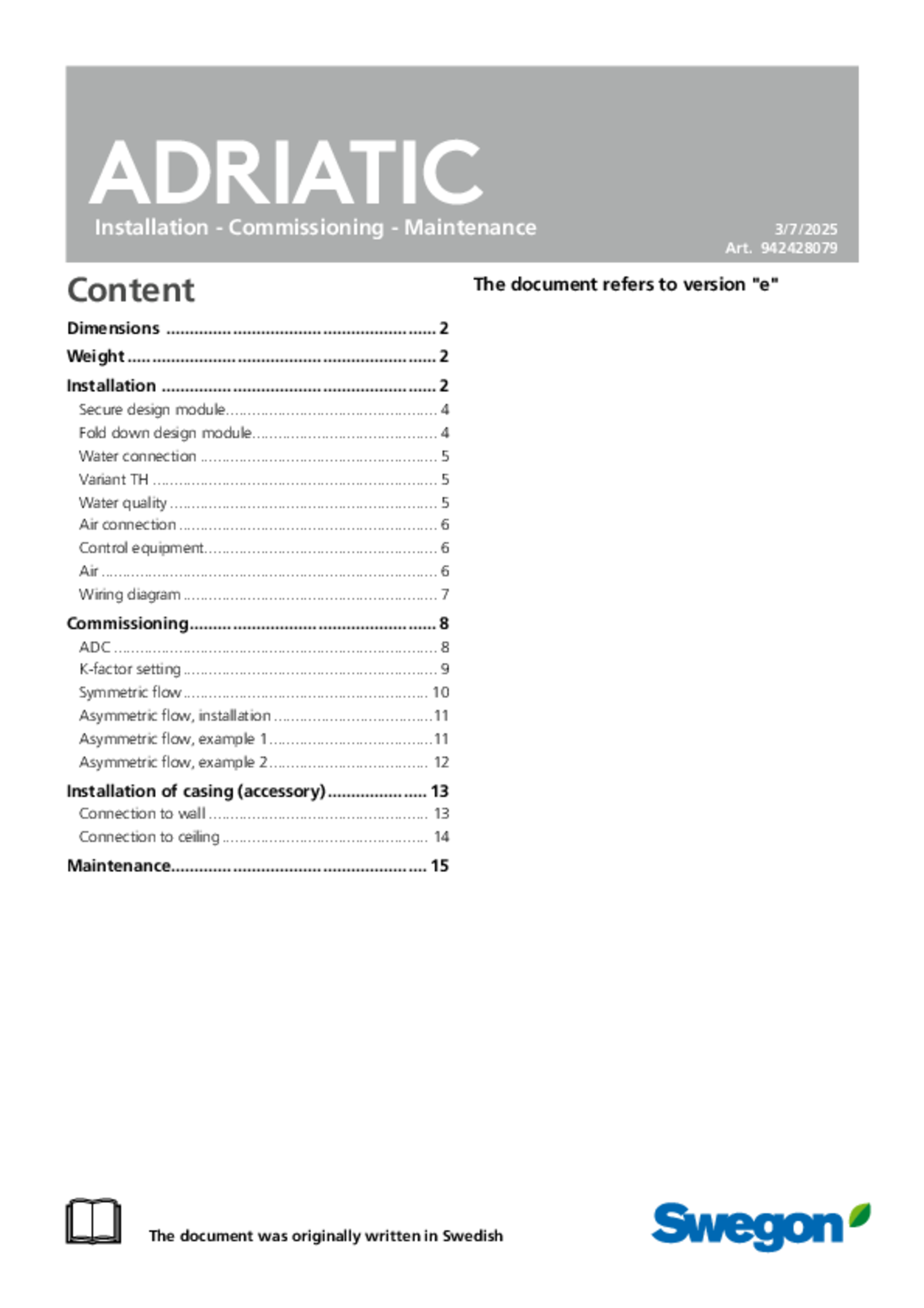 ADRIATIC is a high-performance 2-way distribution active chilled beam for cooling, heating, and ventilating in exposed ceiling applications. Featuring an integrated damper with an indexed flow adjustment knob, ADRIATIC provides air volume flow in constant air volume systems over a very wide span of inlet pressures, eliminating the need for an upstream balancing damper. ADRIATIC may be upgraded for use in Variable Air Volume (VAV) applications by replacing the indexed knob with a 24v actuator connected to a zone controller. ADRIATIC offers a choice of architectural appearances.