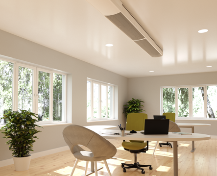 The ADRIATIC VF is a closed climate beam with integrated recirculated air opening in the face plate. Air is discharged into the room along the ceiling.