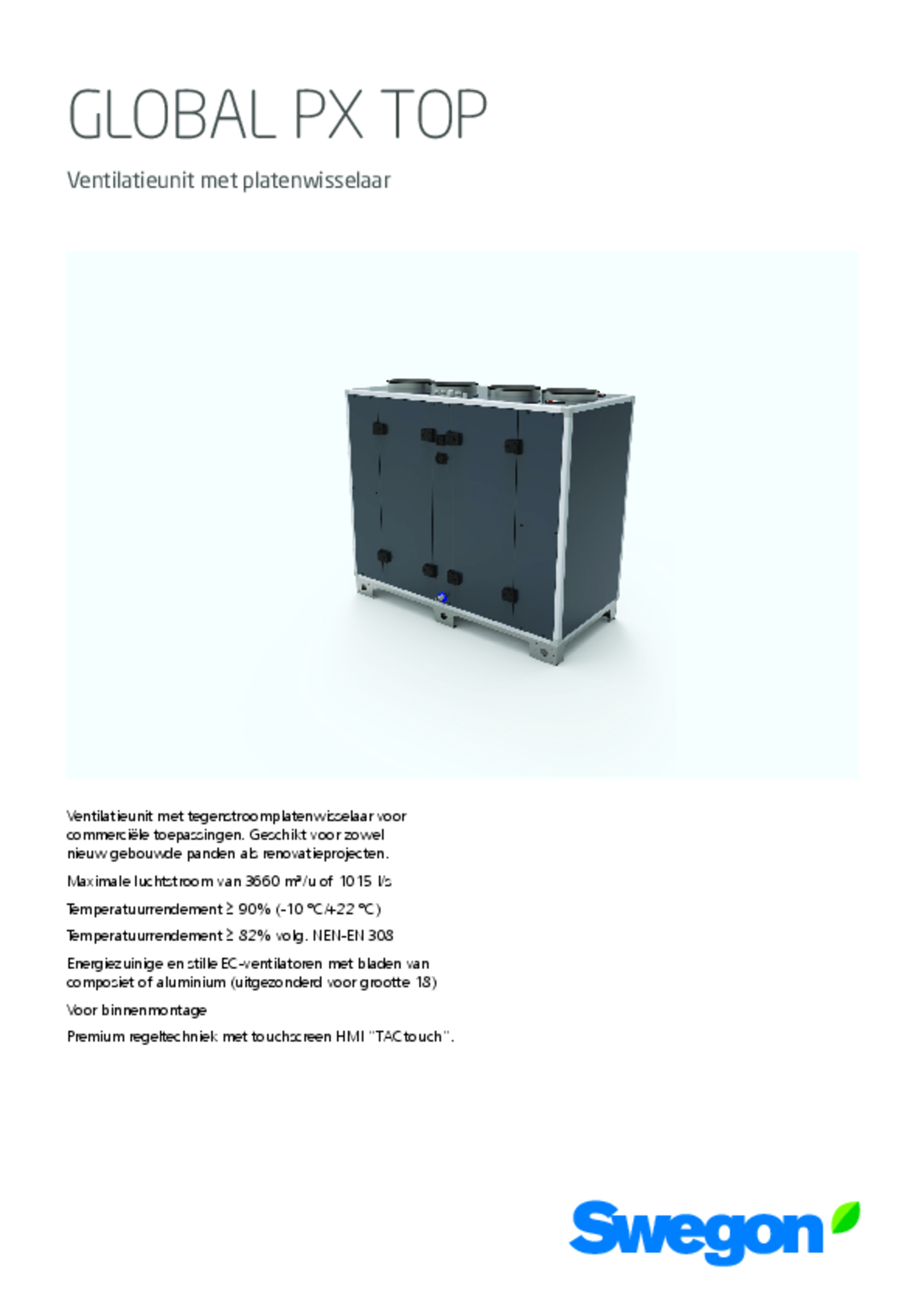 - Max. luchtdebiet 3.600 m³/h (Ecodesign)