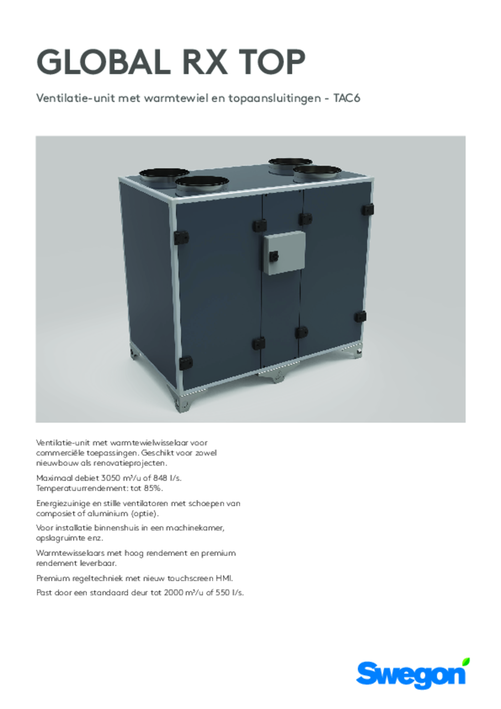 • Max. luchtdebiet 3.050 m³/h (Ecodesign)