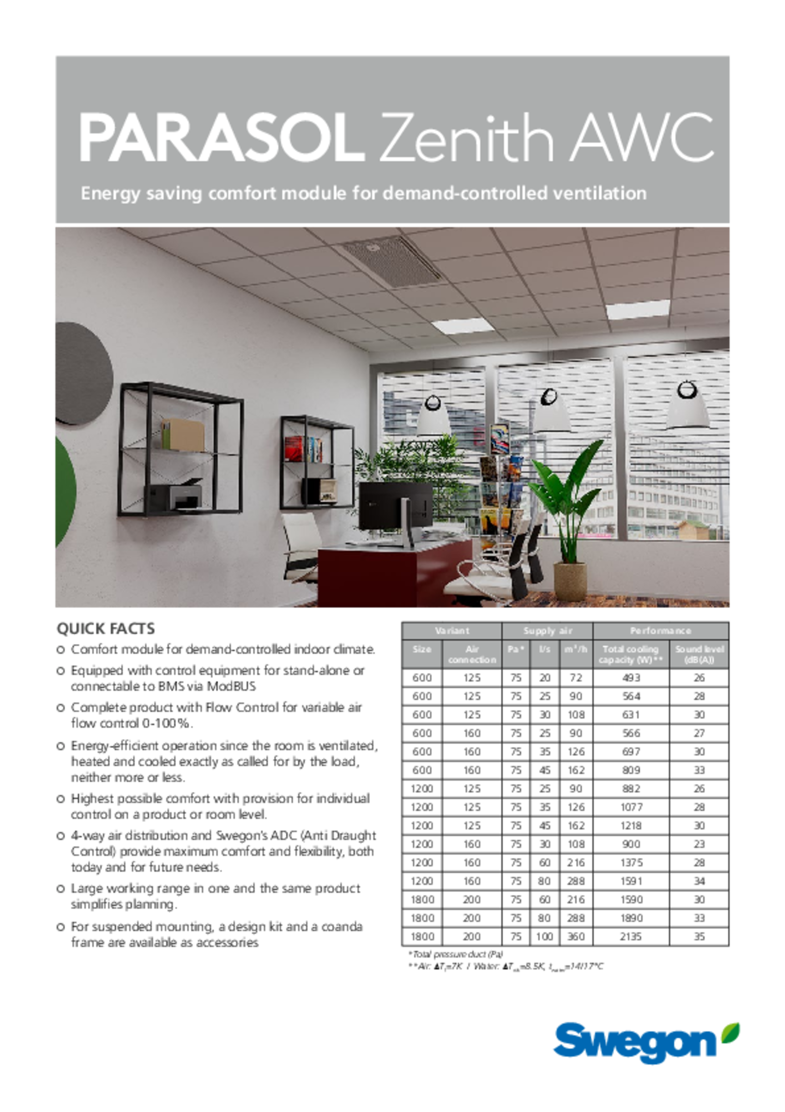 - 4-weg luchtverdeling en Swegons ADC (Anti Draught Control) zorgen voor maximaal comfort en flexibiliteit, zowel vandaag als voor toekomstige behoeften