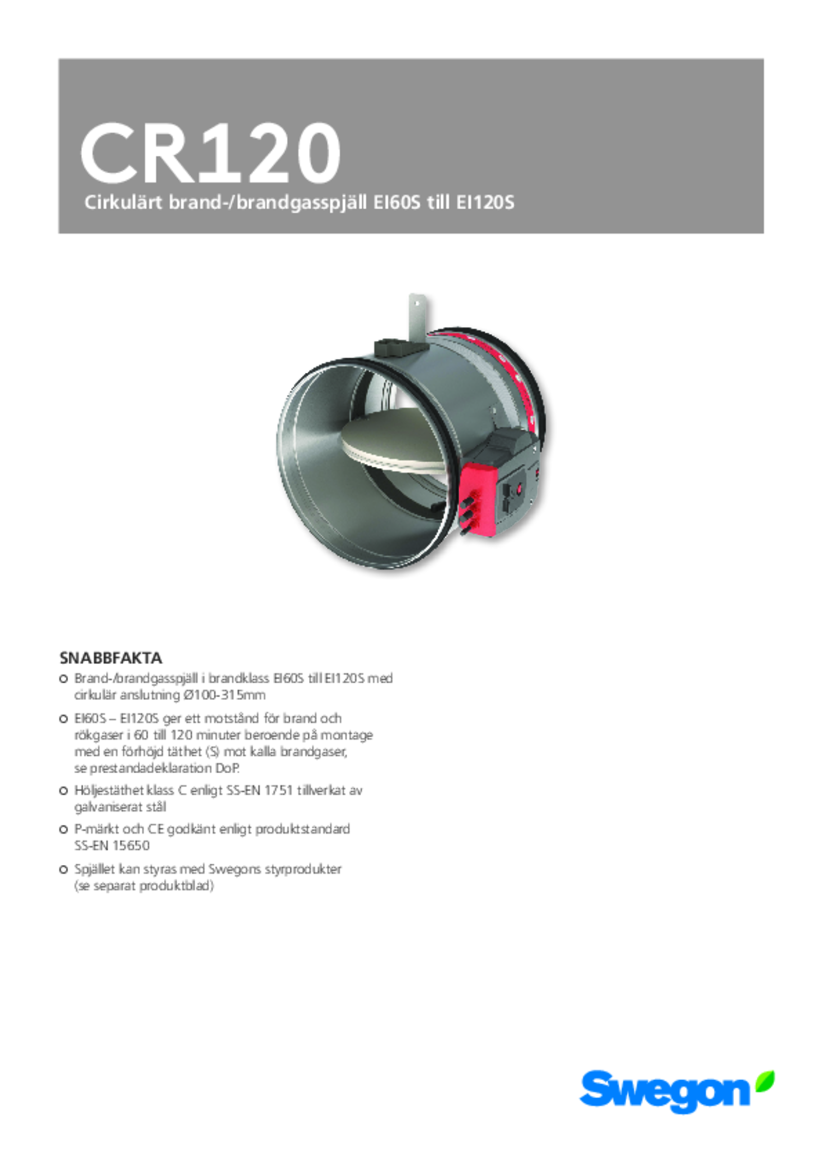 | Cirkulärt brand-/brandgasspjäll EI60S till EI120S (pdf 16.65MB) | CR120 | Teknisk katalog | |