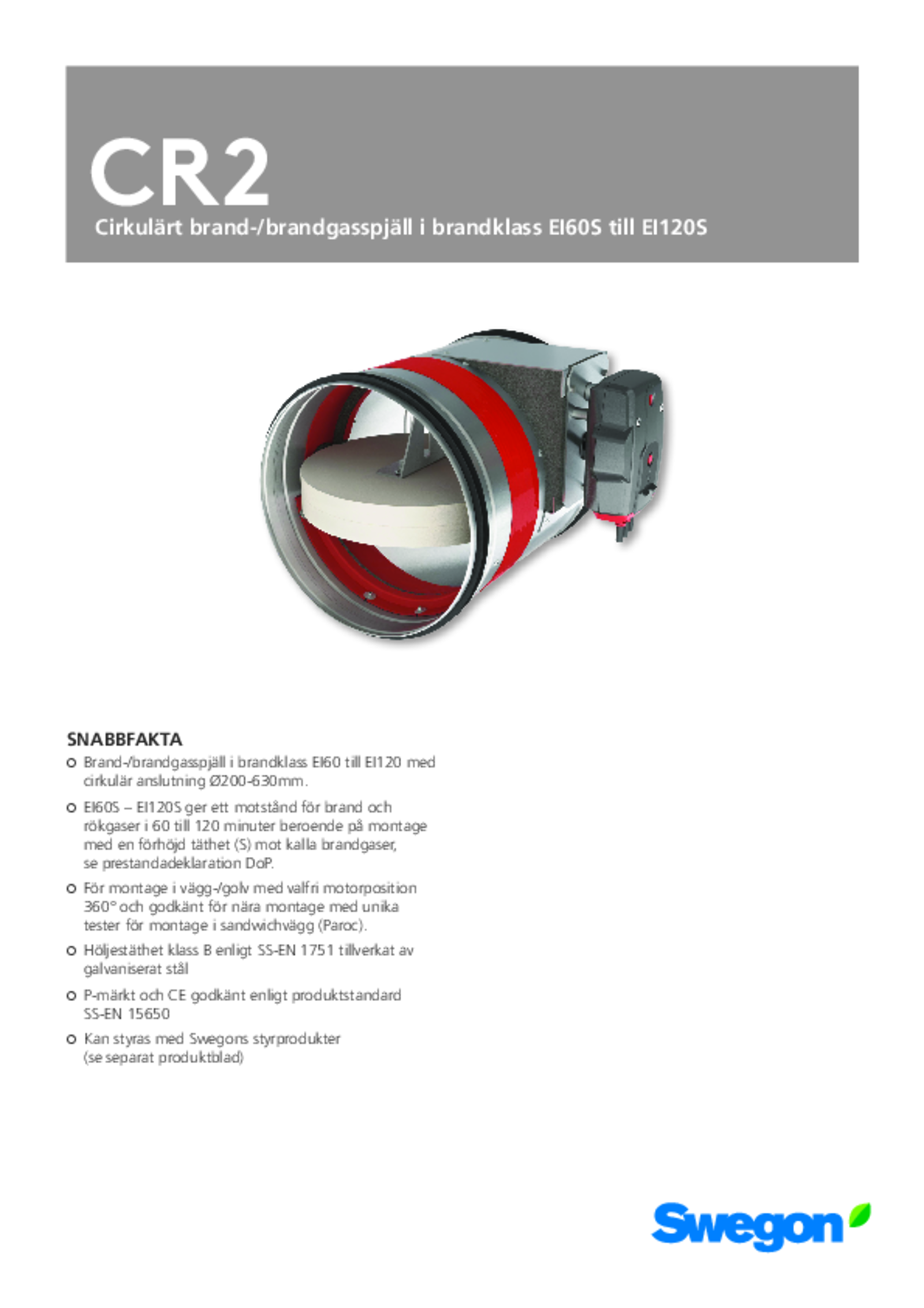 • Kan styres med Swegons styreprodukter (se separat produktblad)