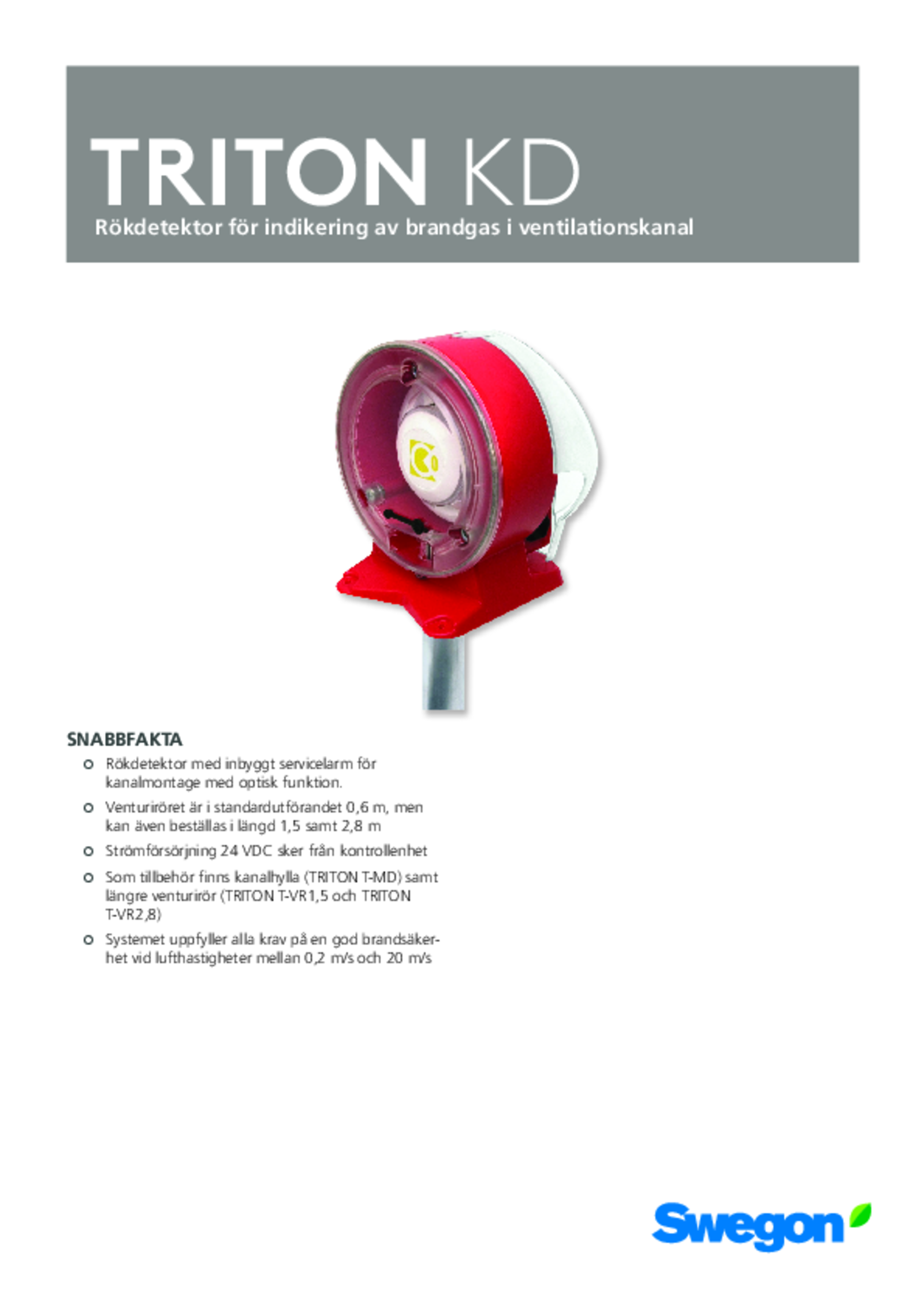 Røykdetektor for indikering av branngass i ventilasjonskanal
