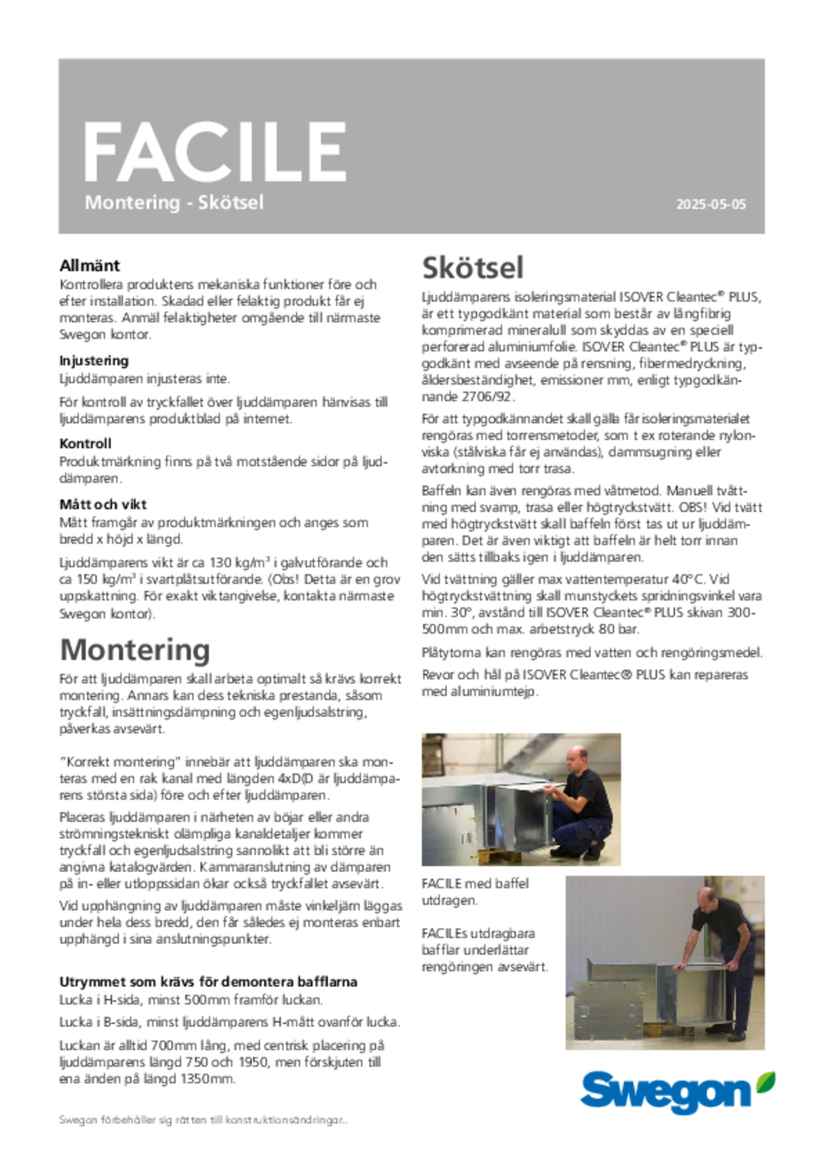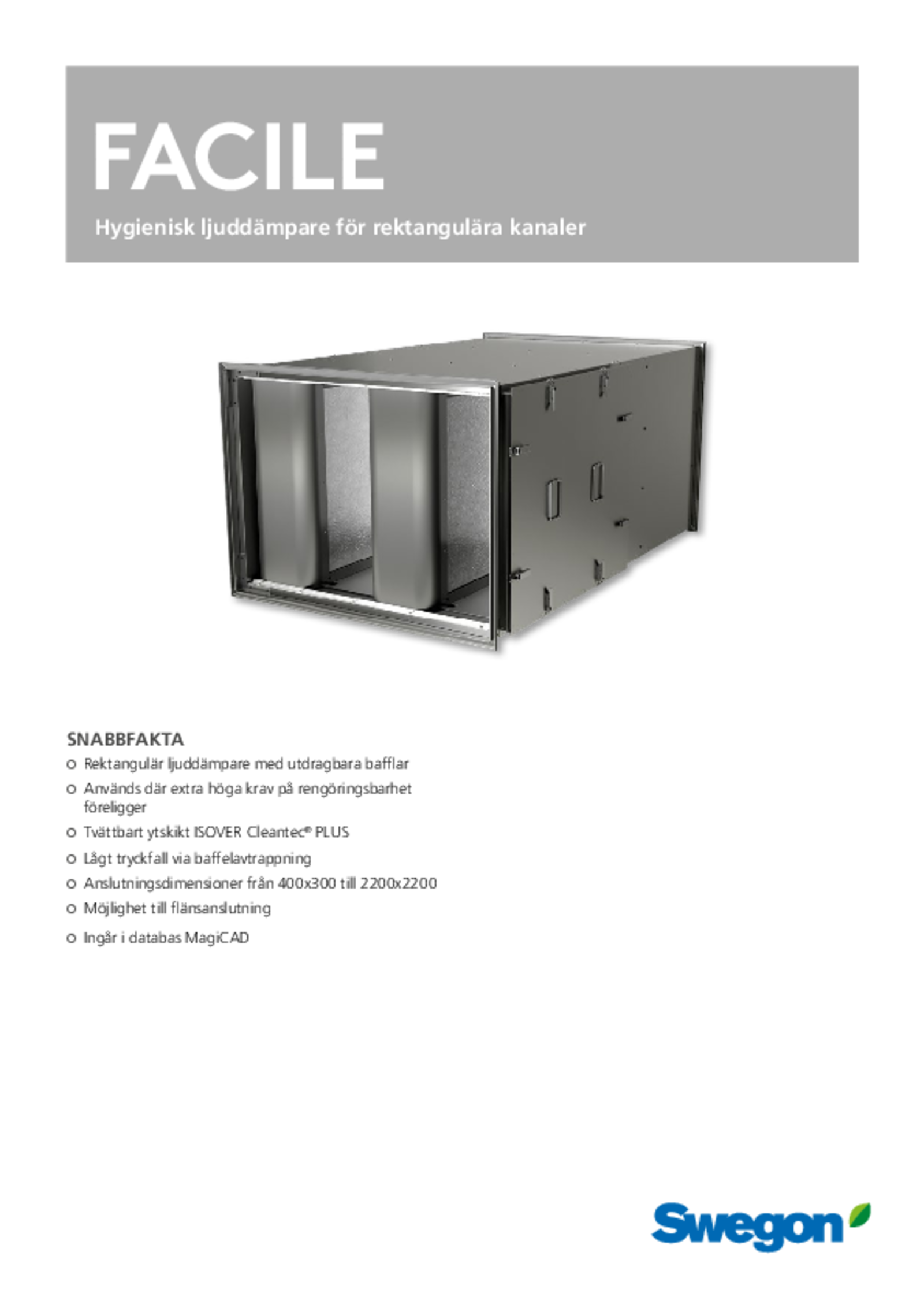 FACILE er en hygienisk lyddemper som benyttes der det stilles ekstra høye krav til rengjøring og ønske om uttrekkbare bafler.