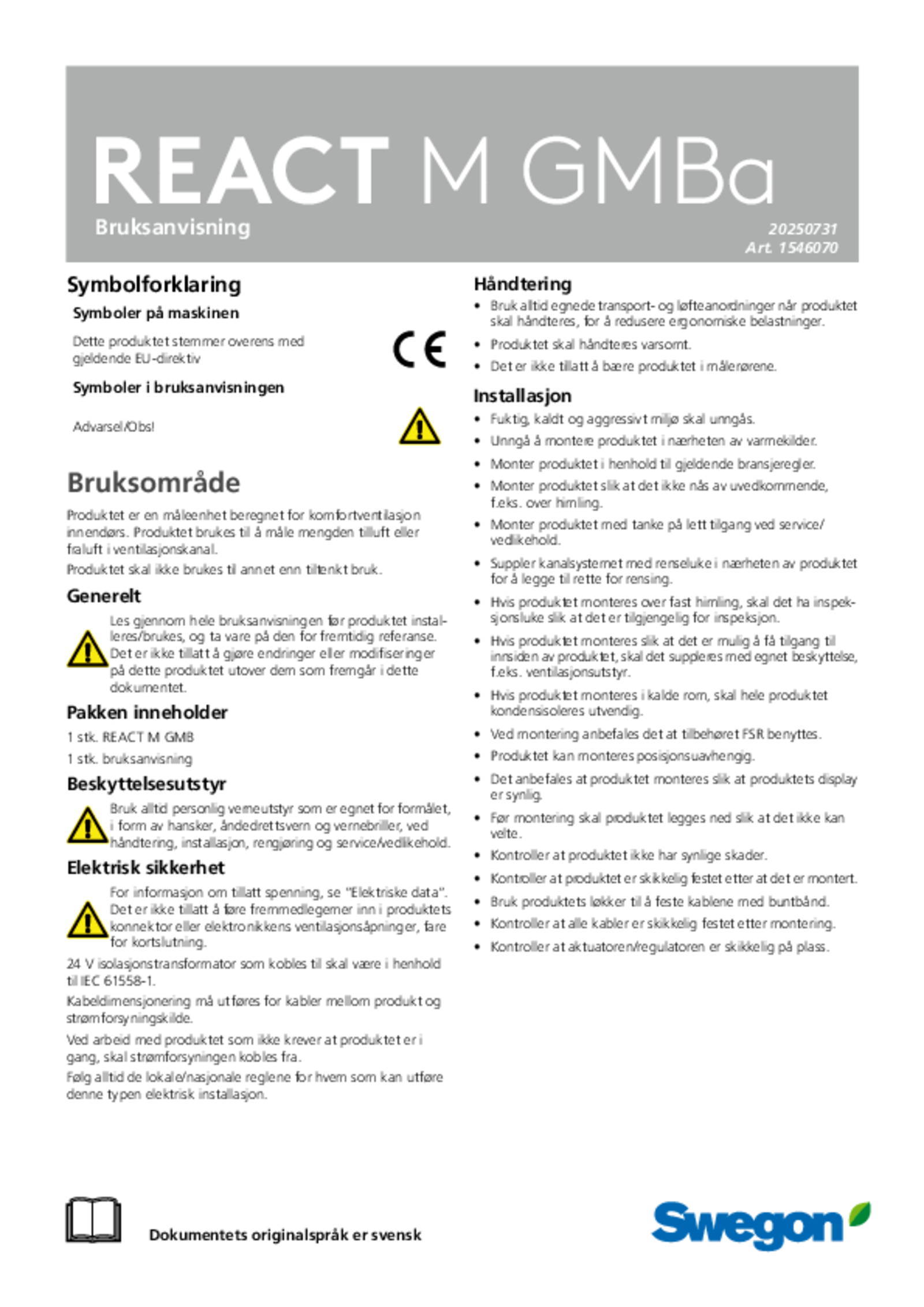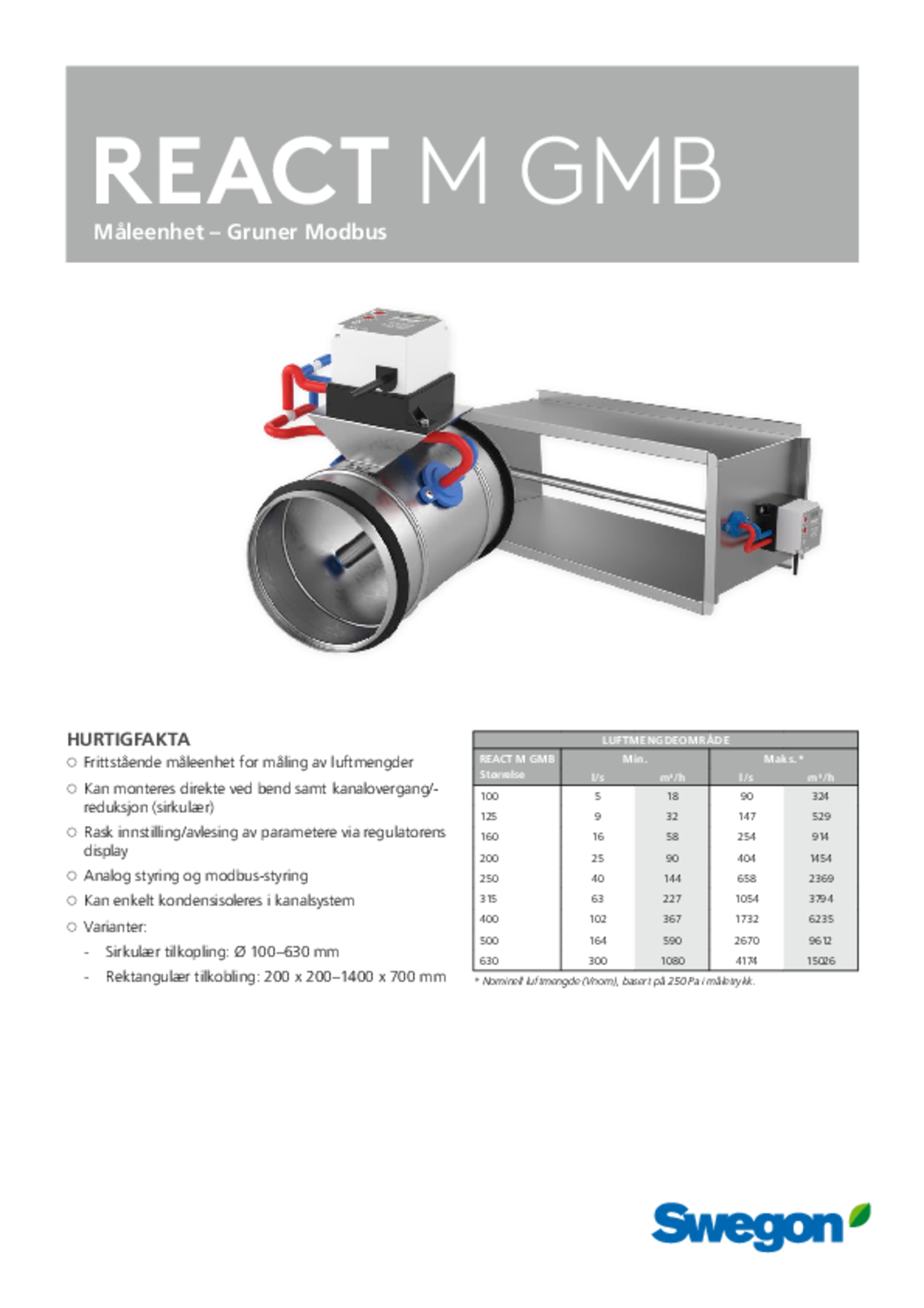 - Kan installeres i både tillufts- og fraluftssystemer.