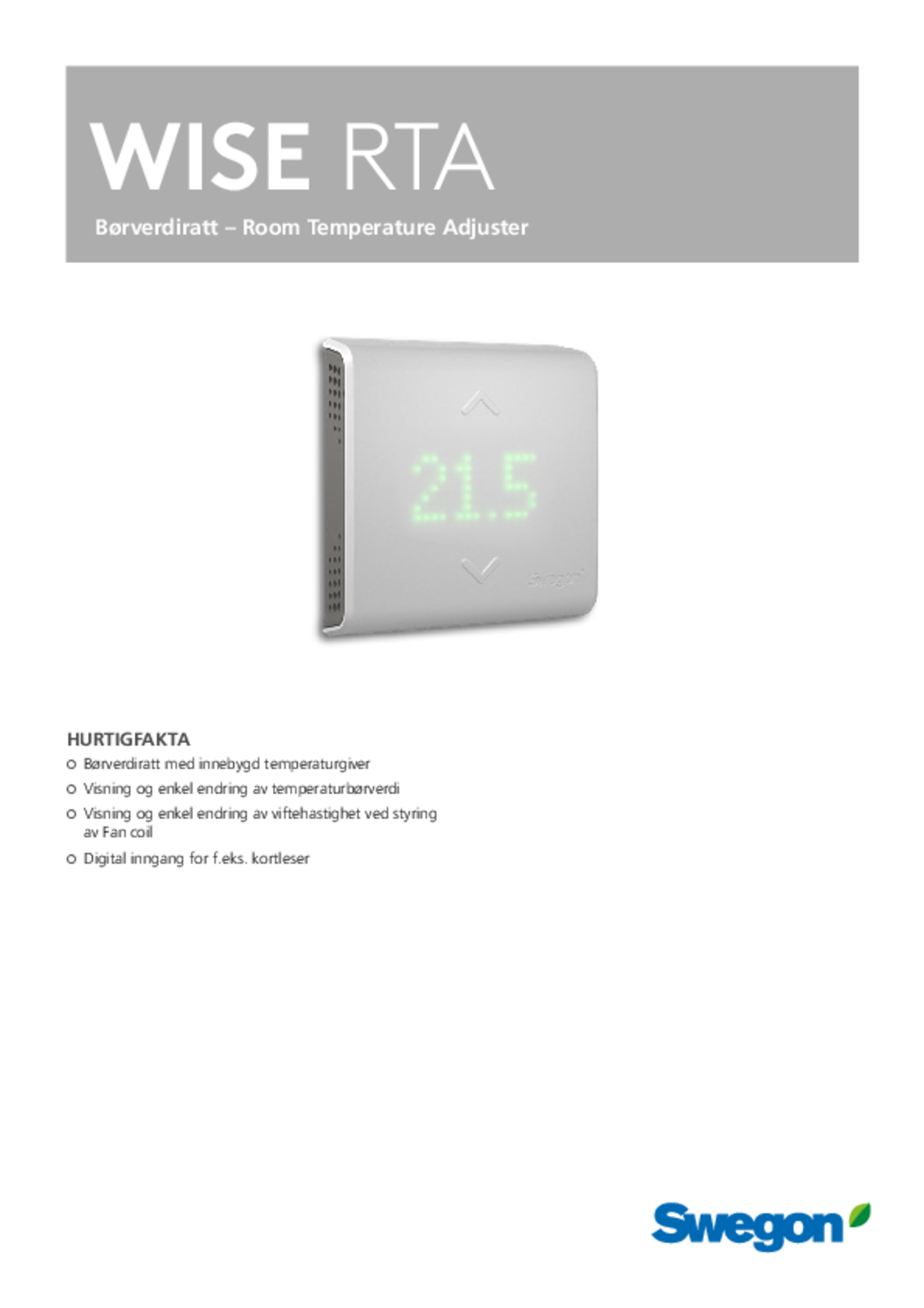 | Børverdiratt - Room Temperature Adjuster (pdf 608.2kB) | WISE RTAa | Teknisk katalog |