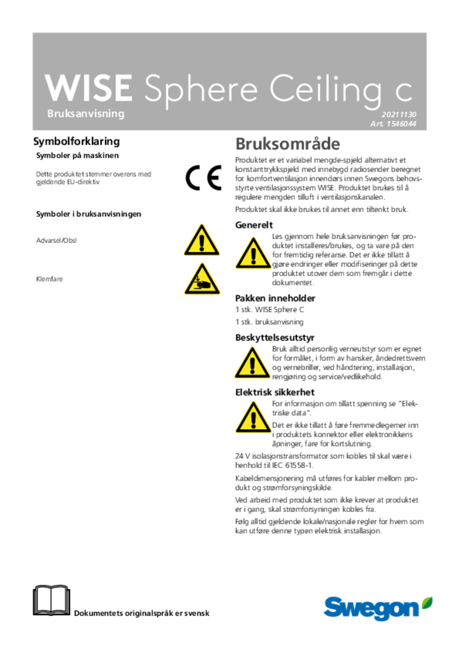 - Beregnet for behovsstyrt ventilasjon av lokaler med varierende belastning.