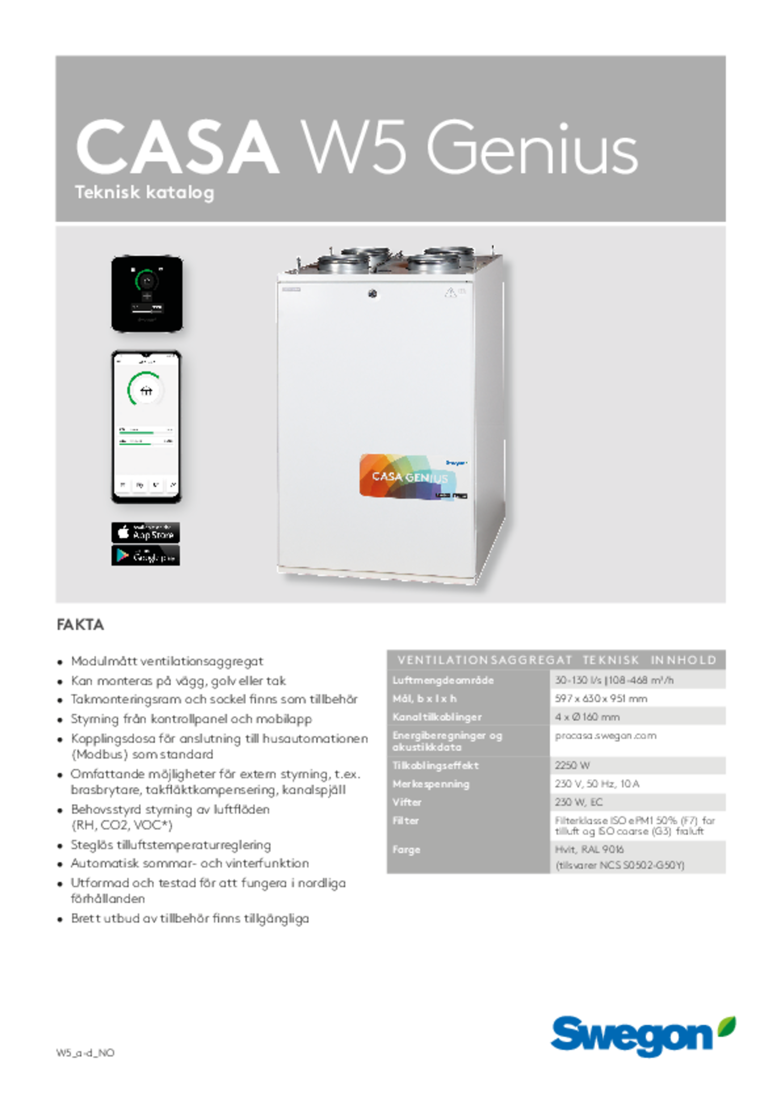| Brosjyre (pdf 7.16MB) | CASA W5 Smart | Teknisk katalog | |