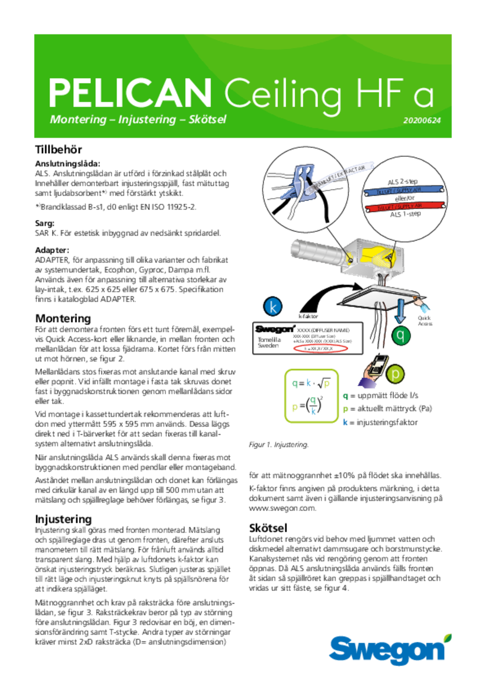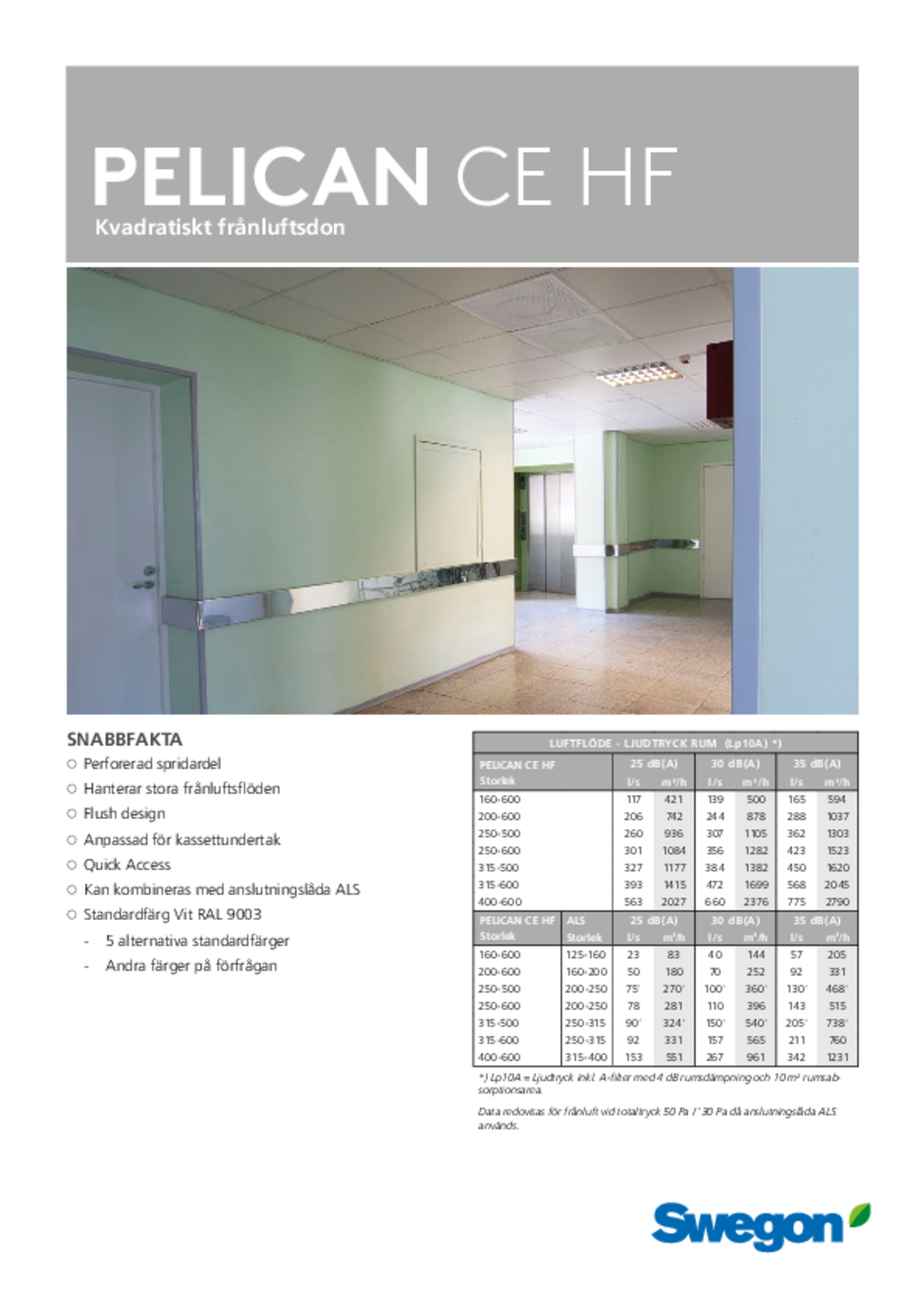 Data vises for fraluft ved totaltrykk 50 Pa / *30 Pa ved bruk av plenumskammer ALS.