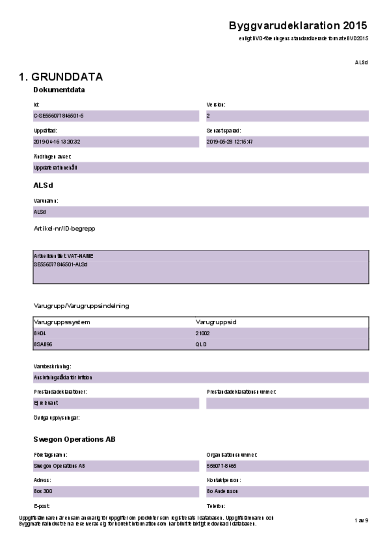- Lydabsorbent er brannklassifisert B-s1, d0 i henhold til EN ISO 11925-2