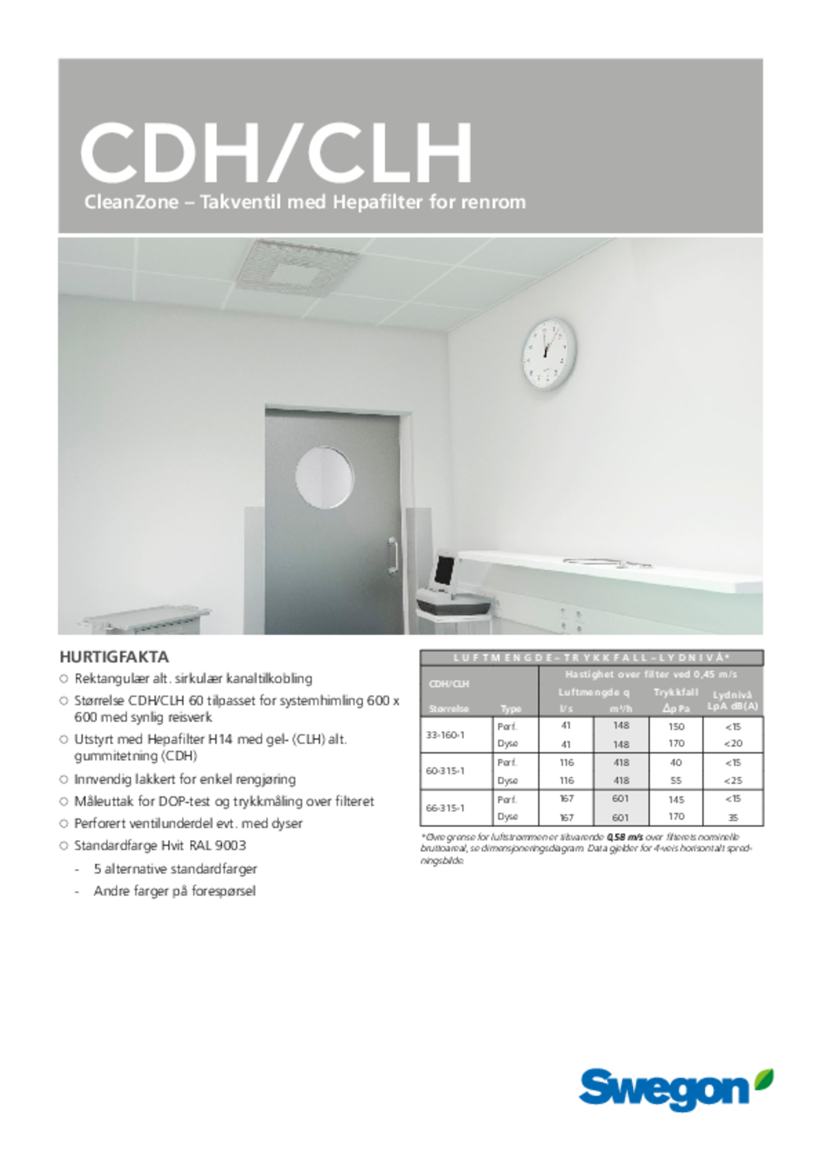 - Utstyrt med HEPA-filter H14 med gel- (CLH) alt. gummitetning (CDH)
