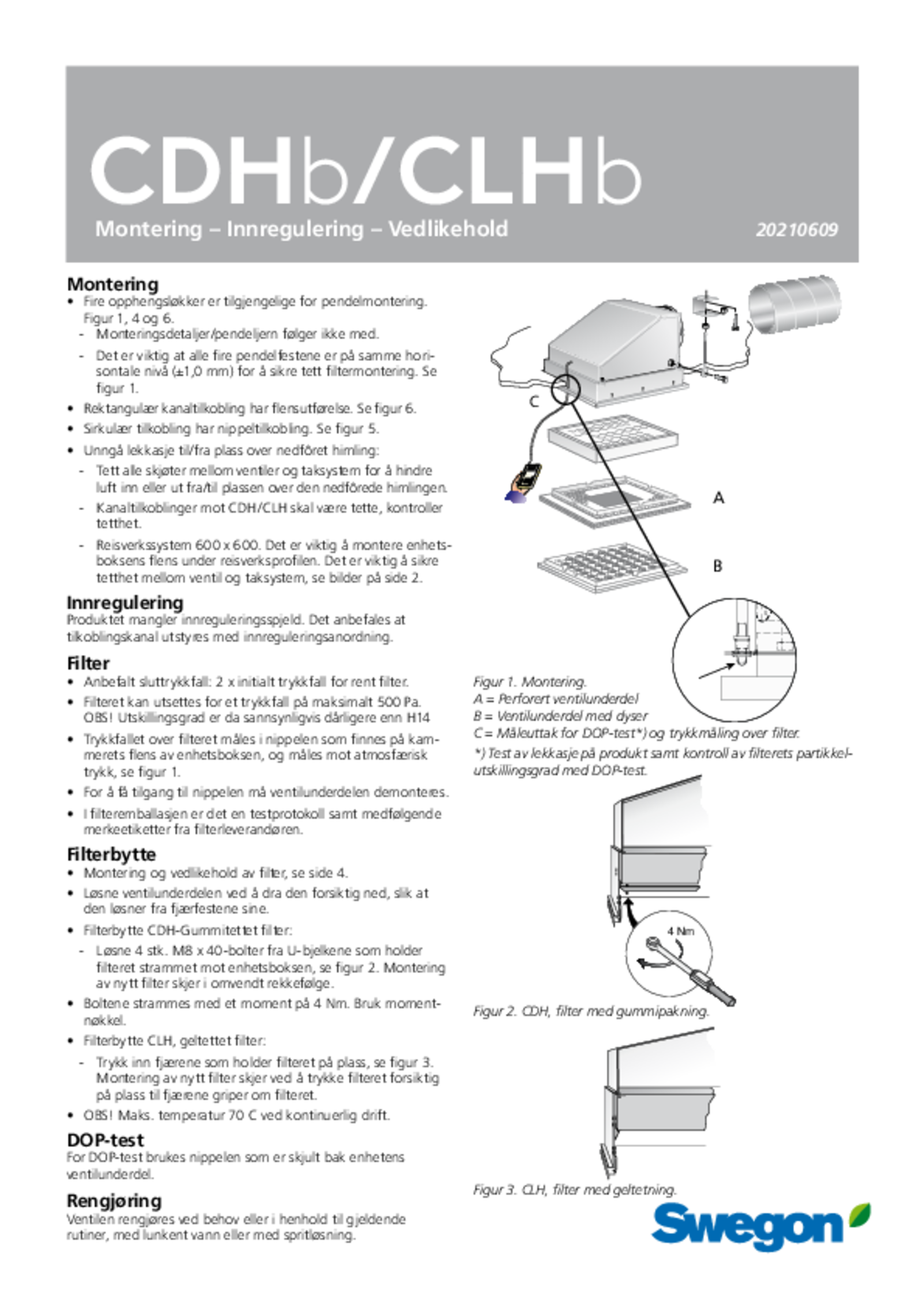 - Måleuttak for DOP-test og trykkmåling over filteret