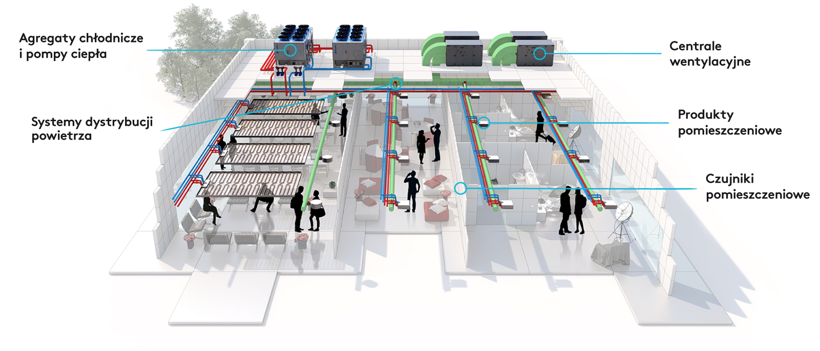 Klimat wewnÄ™trzny postrzegamy jako caÅ‚ość, i podchodzimy do tego zagadnienia holistycznie. W swojej ofercie mamy wszystkie narzÄ™dzia niezbÄ™dne do stworzenia optymalnego rozwiÄ…zania. Nasze produkty i systemy sÄ… elastyczne, dziÄ™ki czemu w prosty sposób można dostosować je i zintegrować z innymi systemami. Ponadto sÄ… Å‚atwe w konserwacji i rekonfiguracji dziÄ™ki platformie w chmurze, która umożliwia monitorowanie i proaktywnÄ… obsÅ‚ugÄ™. Co równie istotne, nasze produkty sÄ… zrównoważone, energooszczÄ™dne i zaprojektowane tak, aby pomóc klientom w osiÄ…gniÄ™ciu konkretnych celów Å›rodowiskowych.