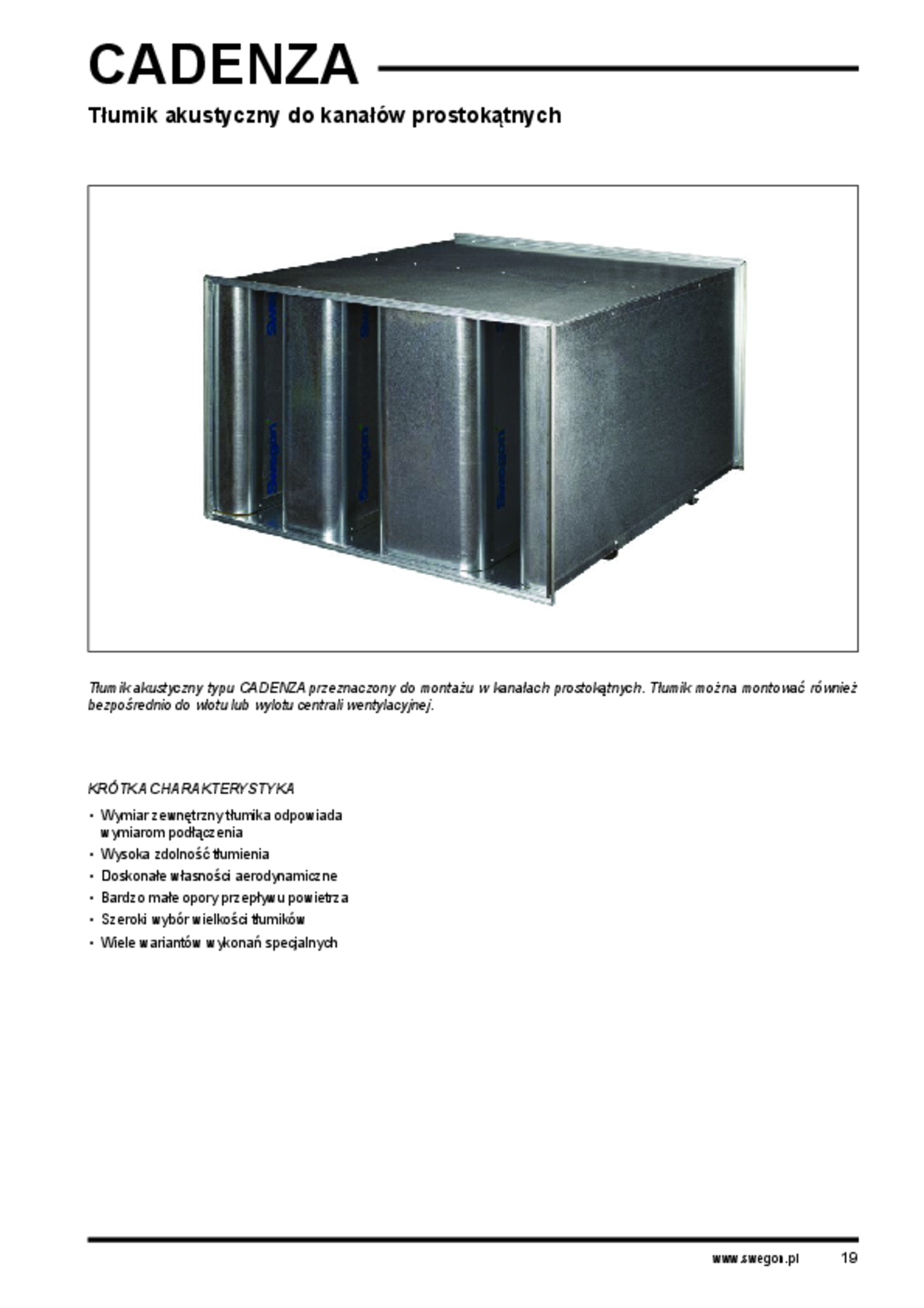 | Tłumik akustyczny do kanałów prostokątnych (pdf 526.4kB) | CADENZA | Katalog techniczny | |