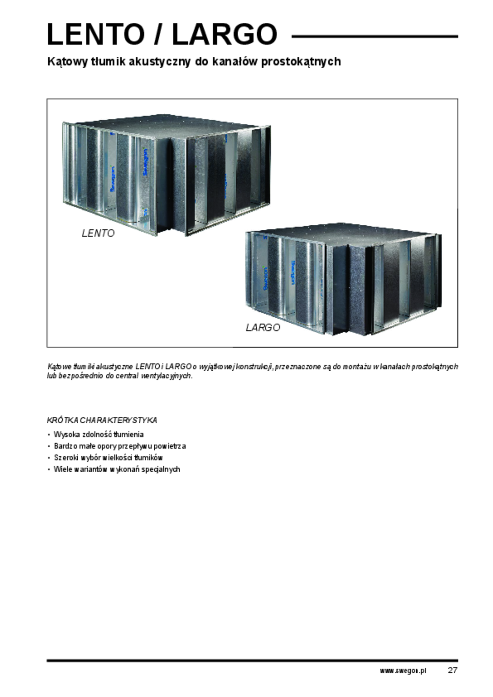 Kątowe tłumiki akustyczne ze względu na unikalną konstrukcję, przeznaczone są do montażu w kanałach prostokątnych lub bezpośrednio do central wentylacyjnych.