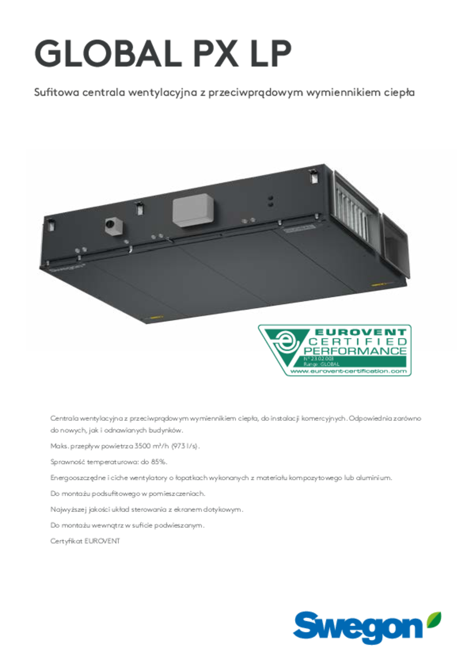 - Maks. przepływ powietrza 3500 m³/h (Ecodesign)