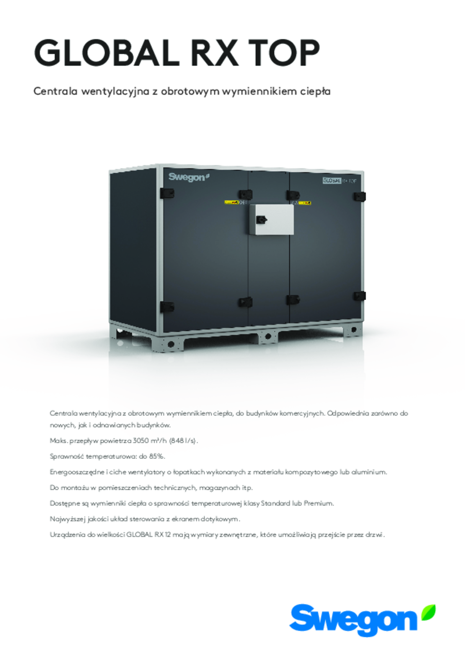 • Maks. przepÅ‚yw powietrza 3050 m³/h (Ecodesign)