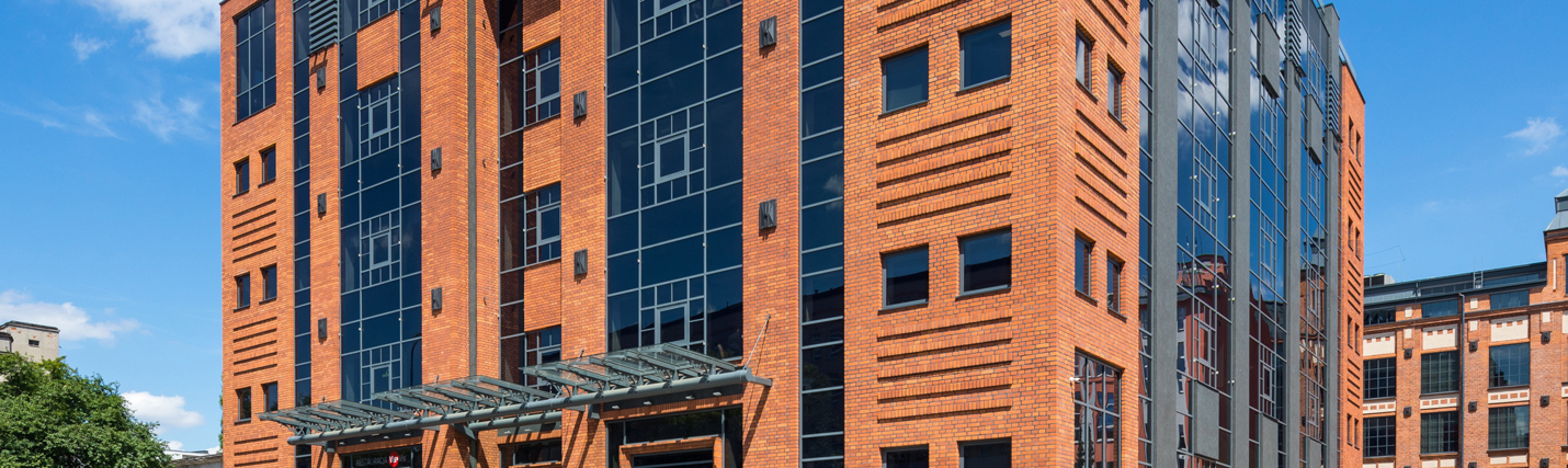 Inwestycja Agraf obejmuje budowę sześciokondygnacyjnego biurowca klasy A z charakterystyczną ceglana fasadą i czarnymi przeszkleniami, nawiązując w ten sposób do łódzkich fabryk.
