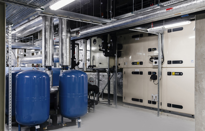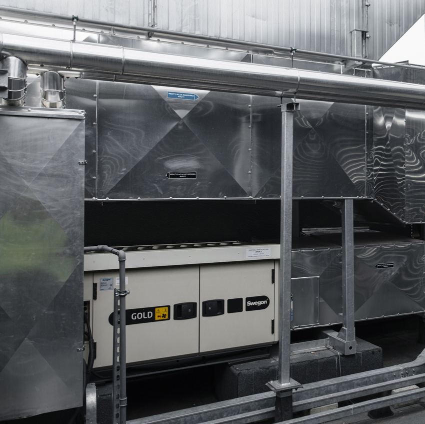 Natomiast dla pozostaÅ‚ych pomieszczeÅ„ zaplecza oraz pomieszczeÅ„ usÅ‚ugowych przewidziano glikolowe wymienniki o wysokich walorach higienicznych. Oddzielnej aranżacji wymagaÅ‚ klub fitness „Fabryka Formy”, gdzie w obrÄ™bie sal treningowych umieszczono niezależne systemy wentylacyjne, również wyposażone w glikolowe wymienniki odzysku ciepÅ‚a. Projektanci z TERMOSTUDIO opracowali bardzo przemyÅ›lany ukÅ‚ad transferu ciepÅ‚a poprzez glikol z pomieszczeÅ„ o wiÄ™kszych zyskach ciepÅ‚a do tych, w których ten bilans jest ujemny. Niezawodność pracy i pewność utrzymania niskich kosztów eksploatacji w systemach GOLD, to niejedyny powód ich zastosowania w tak prestiżowym obiekcie. RównorzÄ™dnÄ… przyczynÄ… jest bezkonkurencyjnie cicha praca. Opatentowane rozwiÄ…zanie wentylatorów produkowanych w tej samej fabryce, w której wytwarza siÄ™ kompletne centrale, gwarantuje najlepsze dopasowanie geometrii wentylatora do dostÄ™pnego w centrali miejsca, dodatkowo sposób mocowania i dobór wibroizolatorów skutkuje tym, że na obudowÄ™ nie sÄ… przenoszone żadne drgania. Wymagania dla biurowca klasy A to również kontrola wilgotnoÅ›ci, dlatego centrale GOLD zostaÅ‚y wzbogacone o nawilżacze.