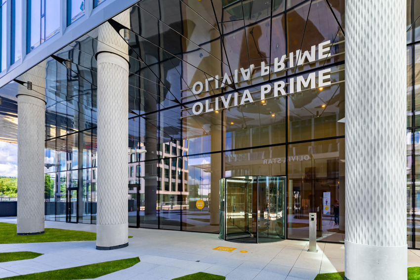 Olivia Prime to dwa połączone ze sobÄ… budynki-pierwsza cześć biurowca – Olivia Prime A - trzon A - o powierzchni 35 000 m2 zostaÅ‚ w 2018 roku oddany do użytkowania, a Olivia Prime B - trzon B - o powierzchni 25 000 m2, oddany do użytkowania zostaÅ‚ rok później. Olivia Prime to także loggie umożliwiajÄ…ce wyjÅ›cie na zewnÄ…trz bez opuszczania biura. Duże tarasy dla pracowników znajdujÄ… siÄ™ także na dachach, które sÄ… wypeÅ‚nione zieleniÄ…. Dodatkowym udogodnieniem dla pracowników jest również kantyna o powierzchni ponad 700 m2, dostÄ™pna zarówno z wewnÄ…trz jak i z zewnÄ…trz budynku.