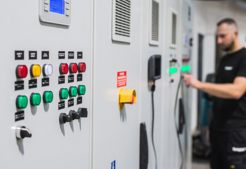 - Regulator (sterownik), transformator, przekaźniki, styczniki