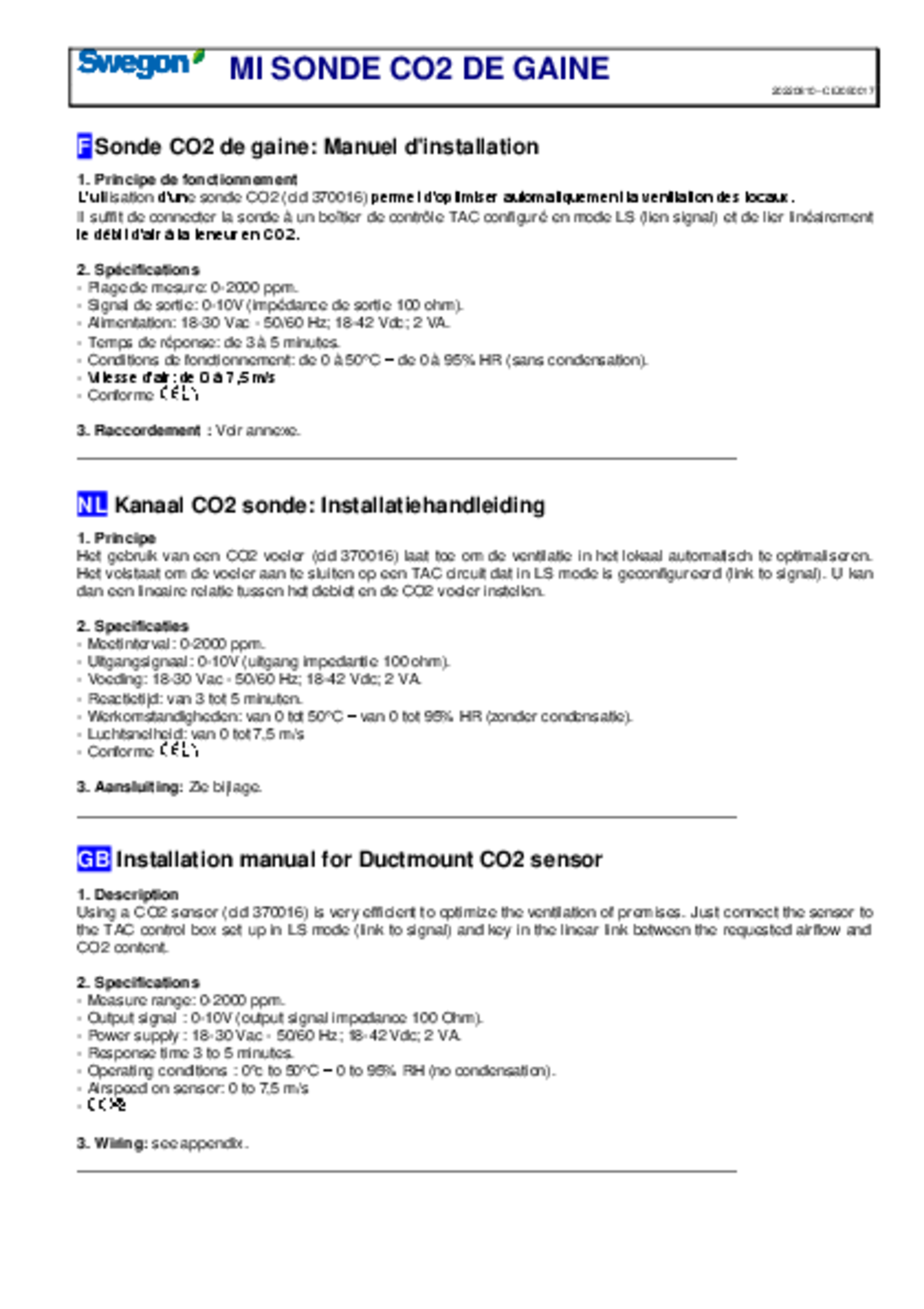 Installation manual CO2 sensor duct (pdf 229.27kB) TAC5-TAC6 Instrukcja
