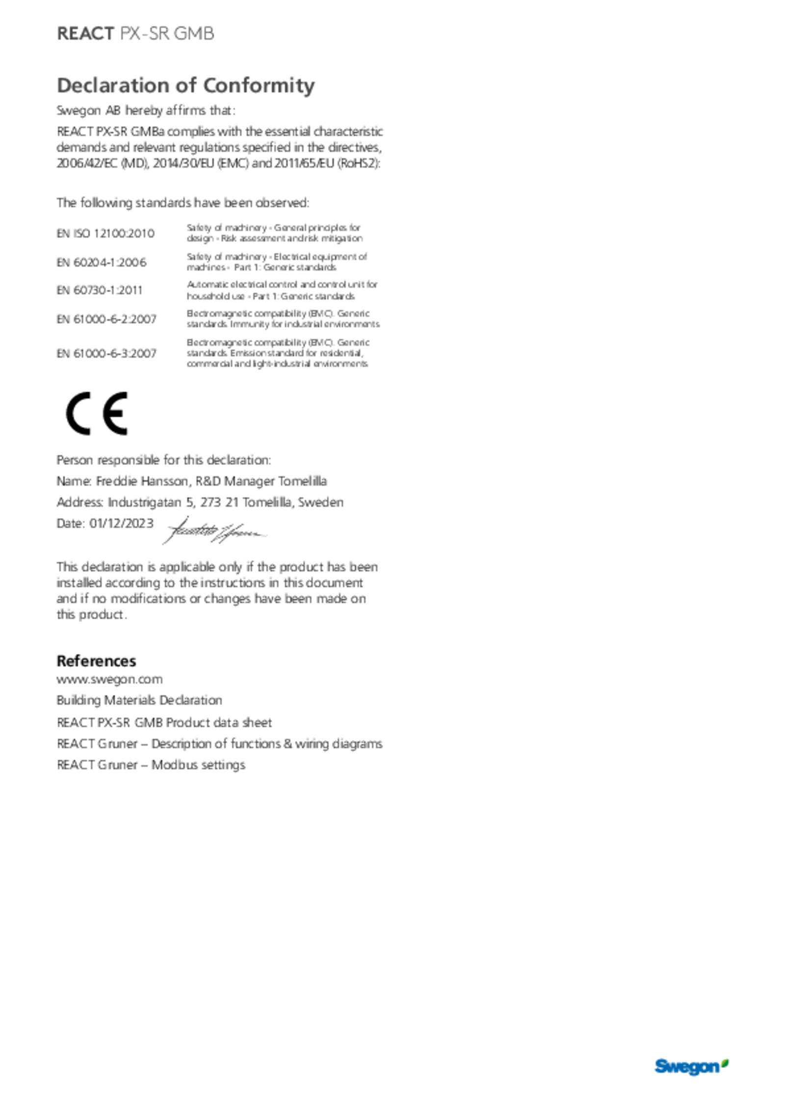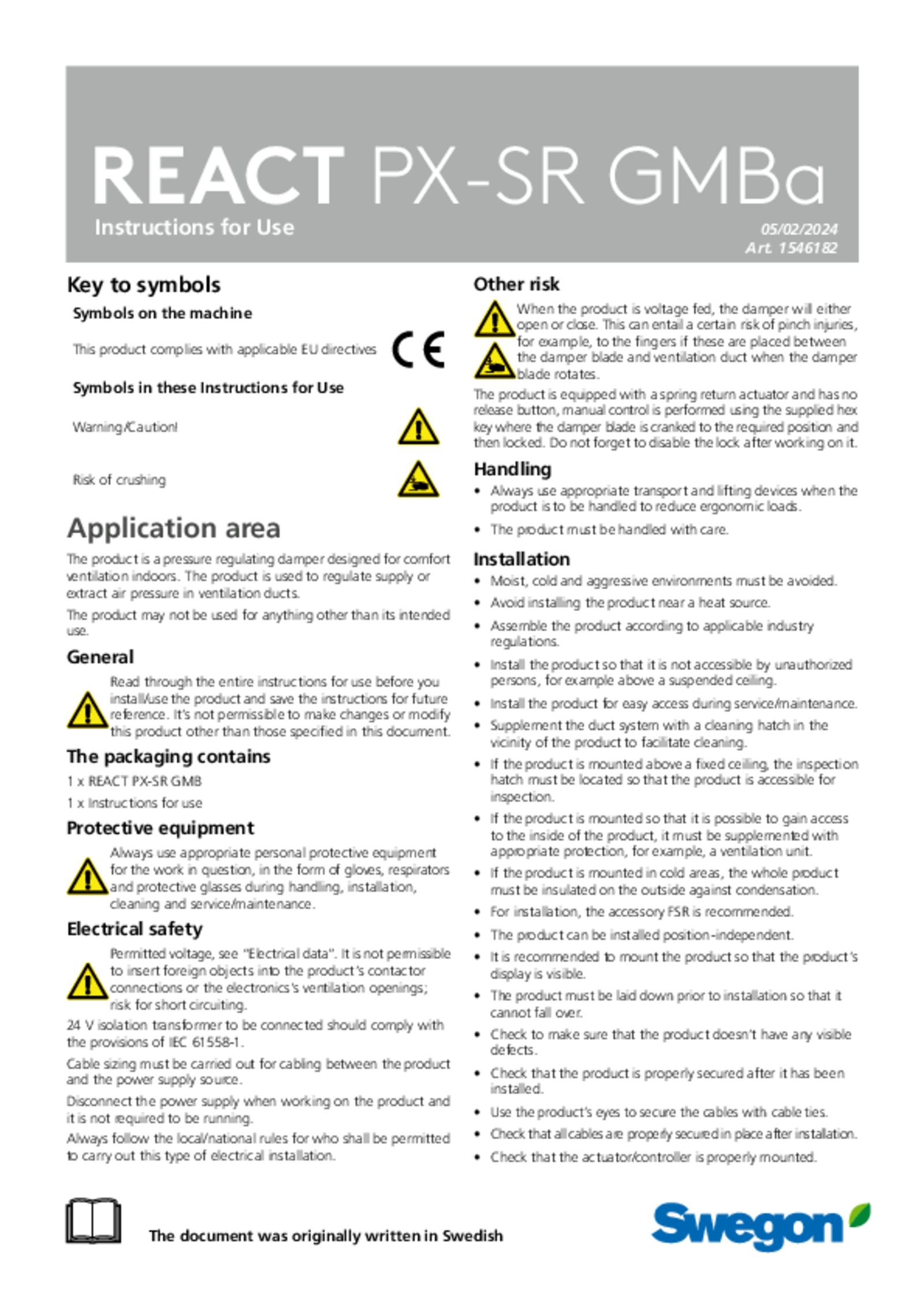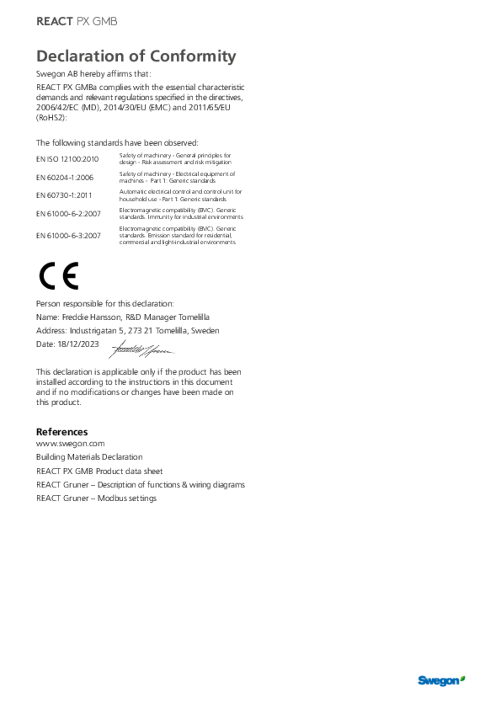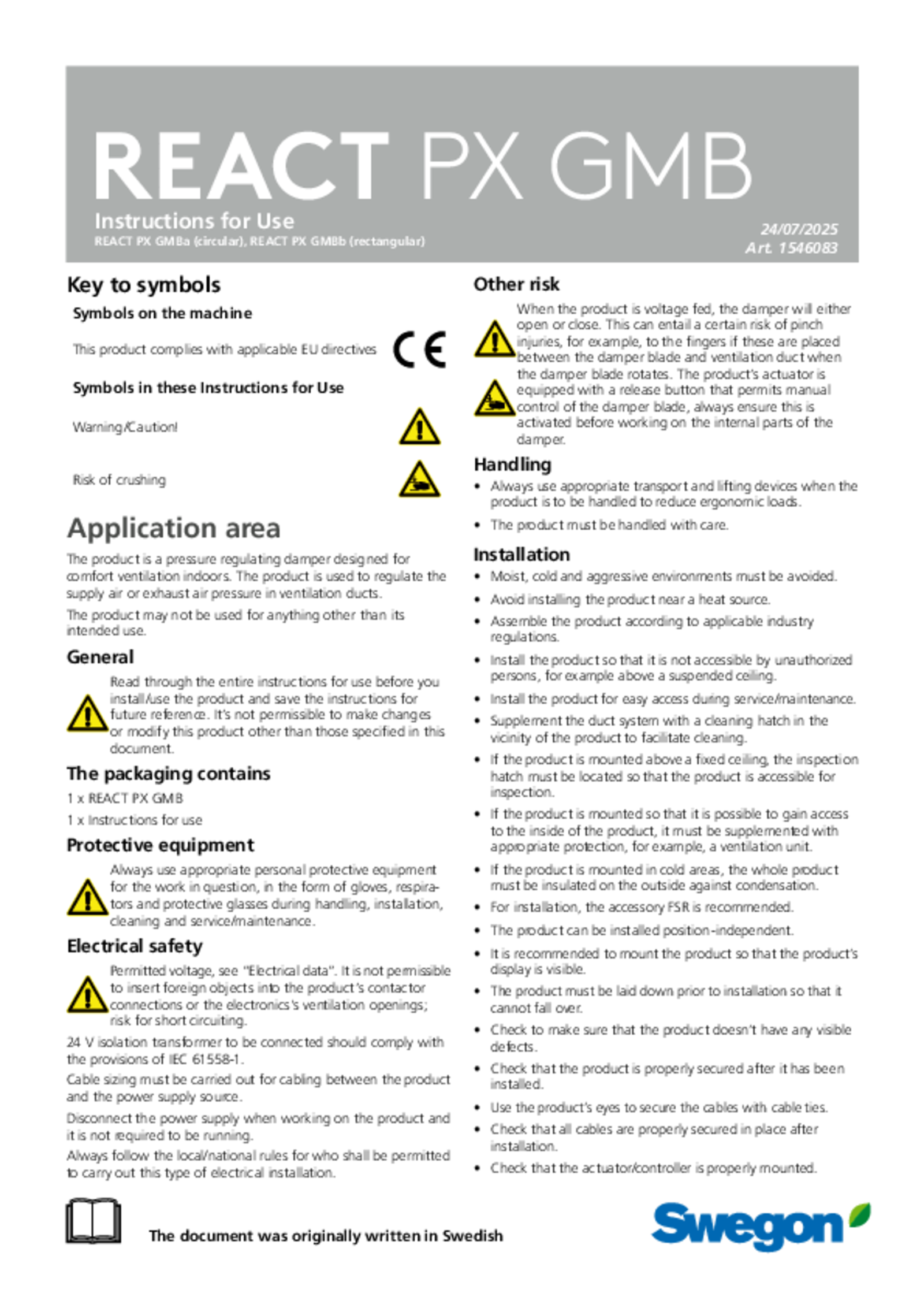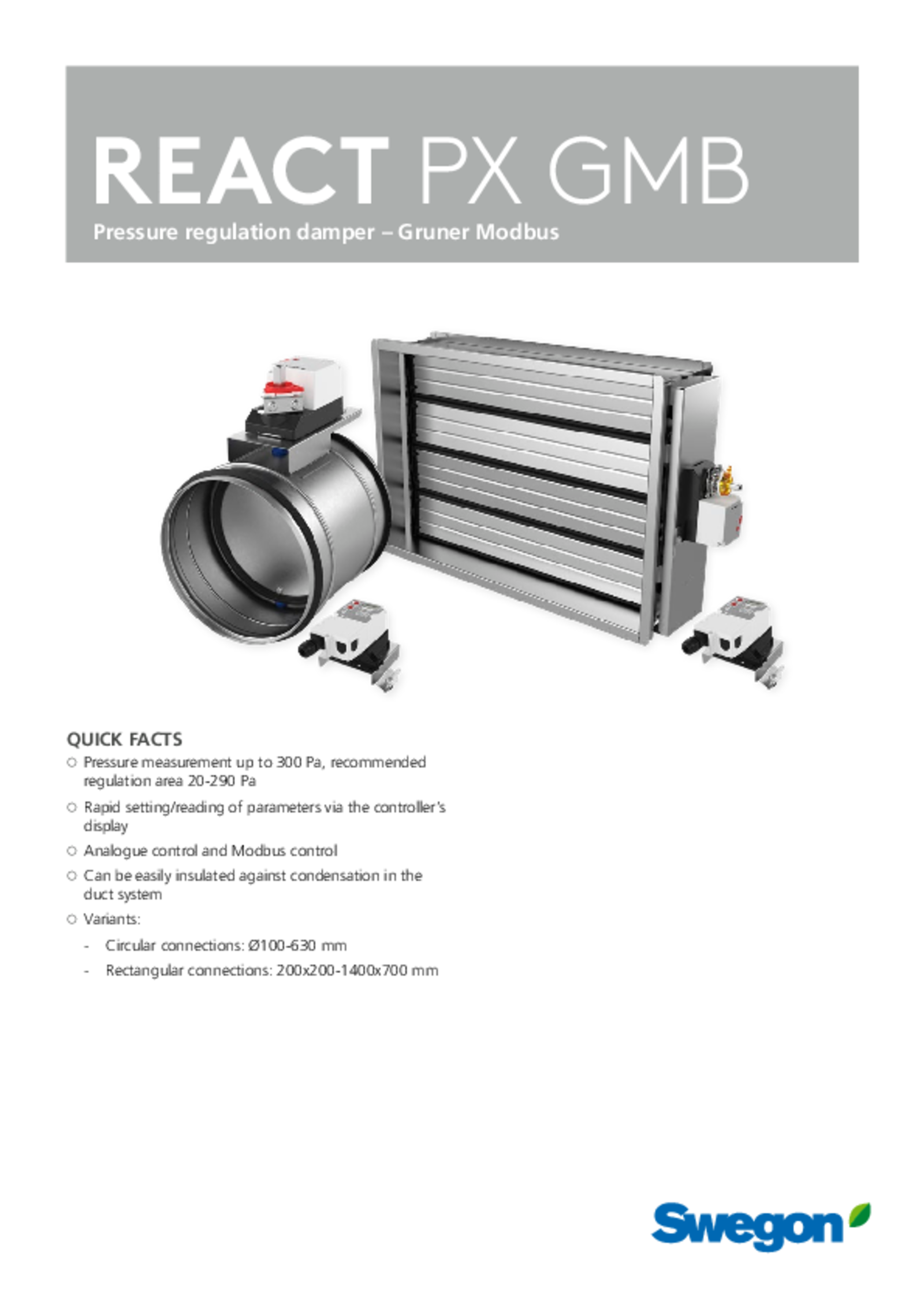 • Pressure dependent and recommended minimum duct pressure 20 Pa.