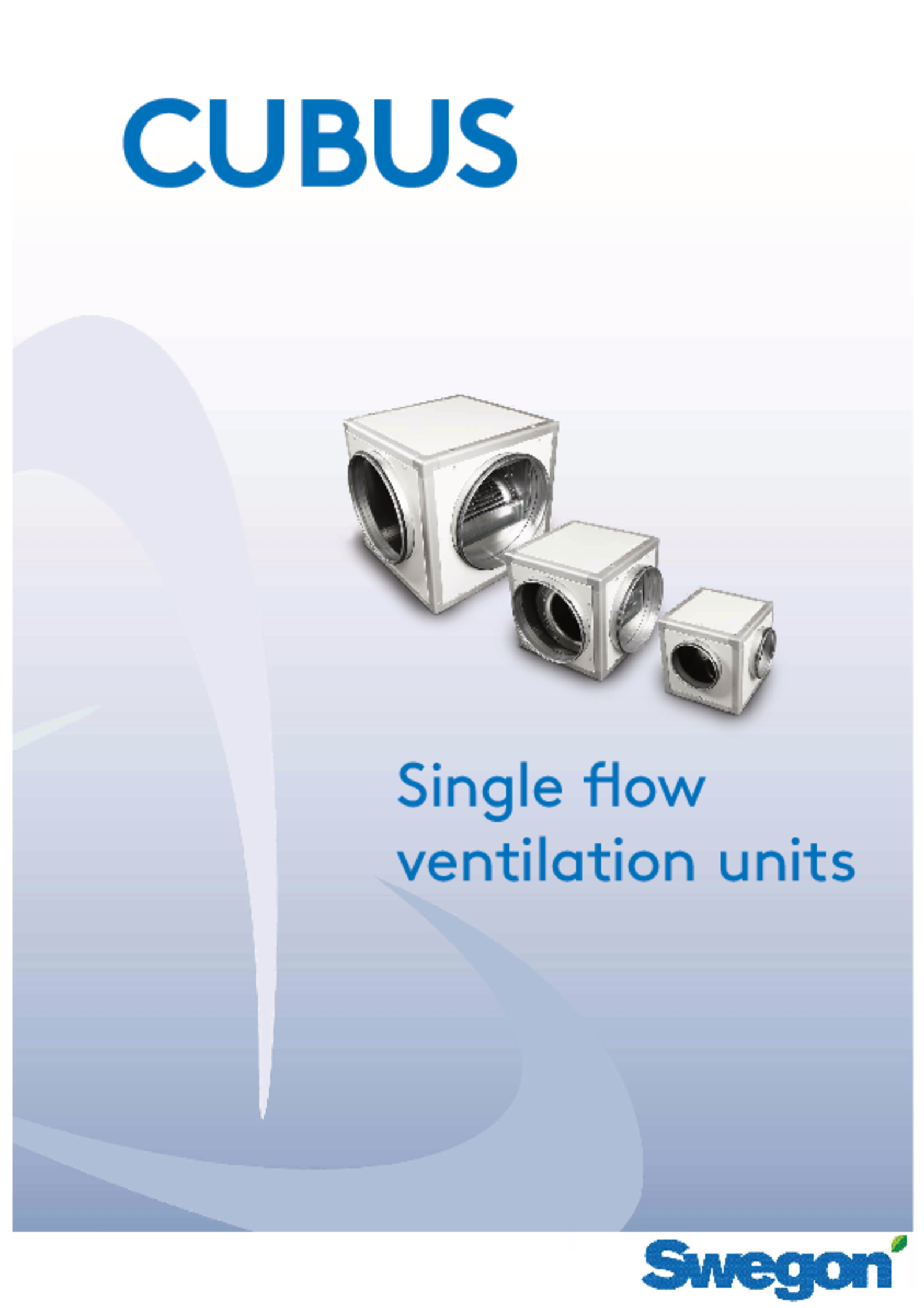 Single flow ventilation unit for extraction/supply of air, with side connections and controls.