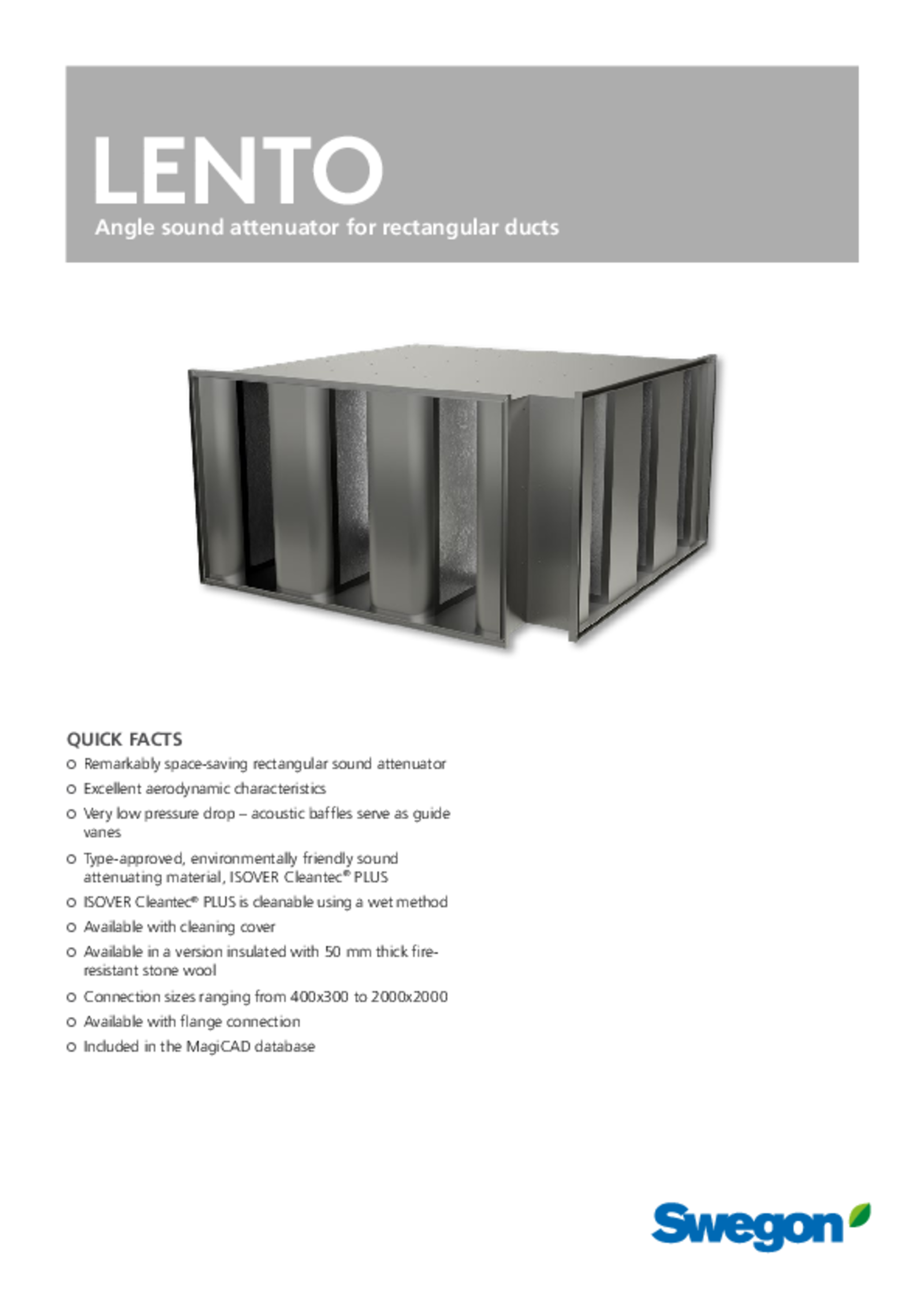 LENTO is, due to its unique design with connection facing the side splitters, suitable for use both in ducts and in direct connection to the air handling unit.