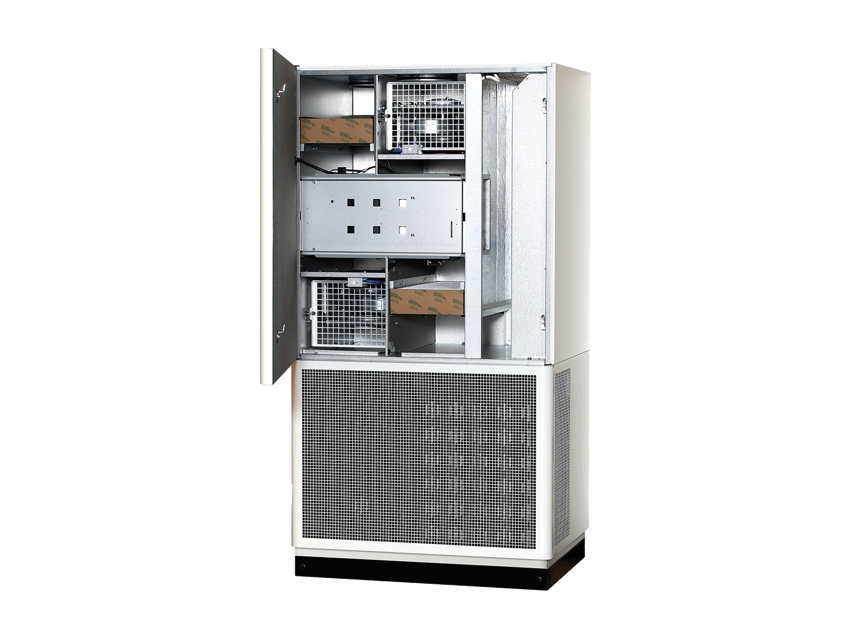 Compact, floor-standing air handling unit for decentralised ventilation of classrooms, conference rooms etc. Equipped with a rotary heat exchanger to provide for both fresh air as well as a low energy consumption. Plug and play with energy saving functionalities.