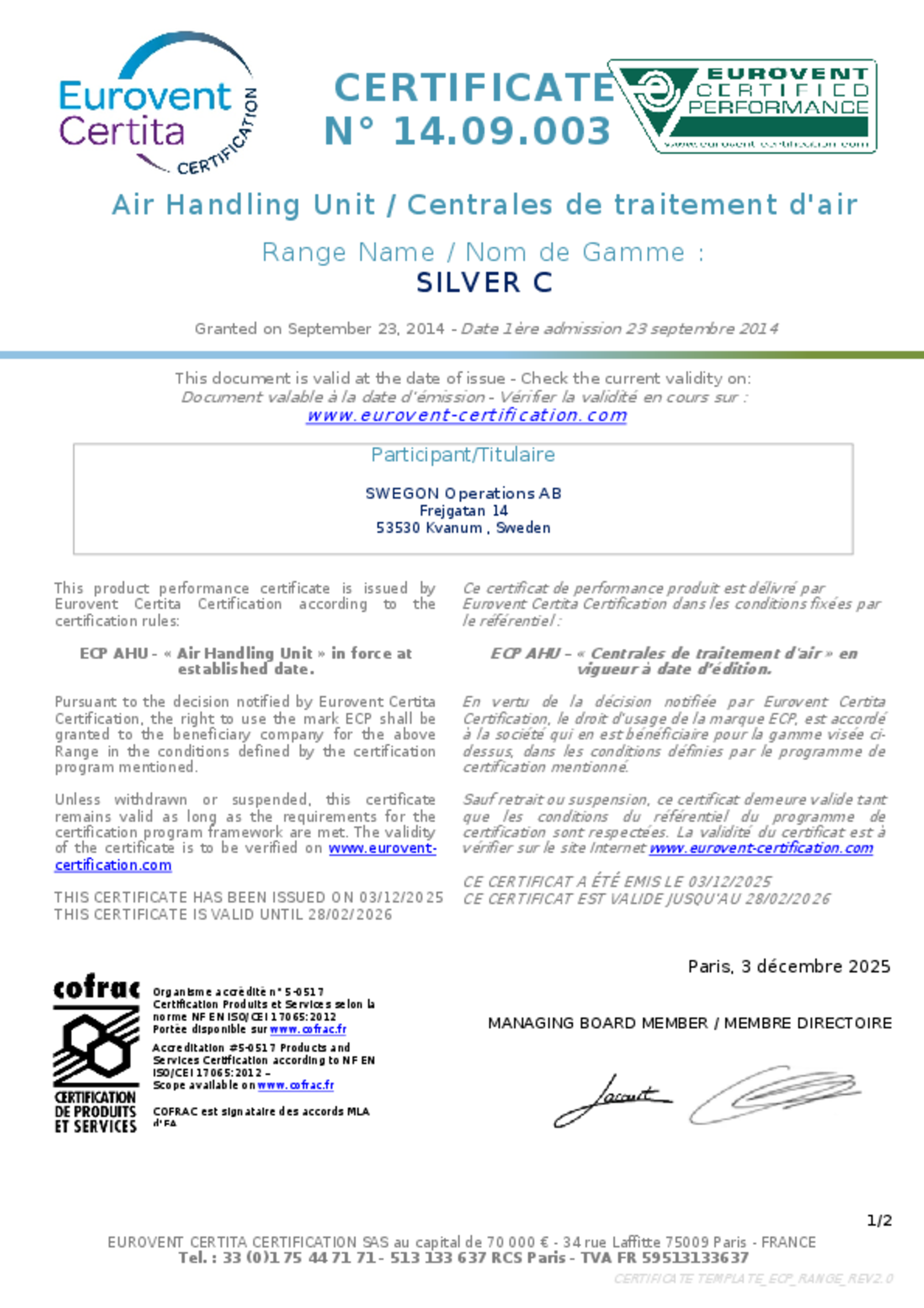 - Max. air flow 39.180 m³/h (Ecodesign)