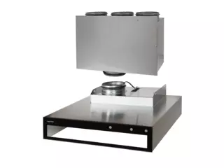 When connected to a ventilation unit it uses the fan in the ventilation unit. Therefore there is no need for a separate fan or exhaust ducting for the kitchen hood. This is also creates less sound in the kitchen compared to hoods that have fan inside of them. The ventilation mode can be controlled from the cooker hood (home/away/boost) and the ventilation unit automatically compensates for the extracted cooking air preventing negative pressure from occurring in the home. It is also possible to control an older AC ventilation unit using the ITFC transformer available as an accessory.