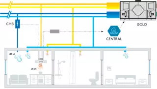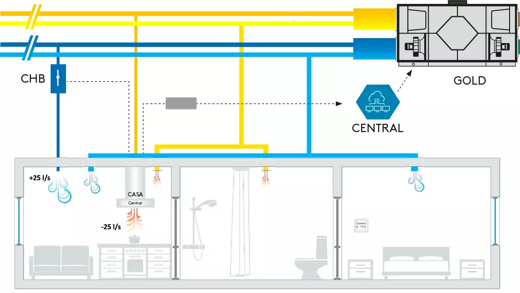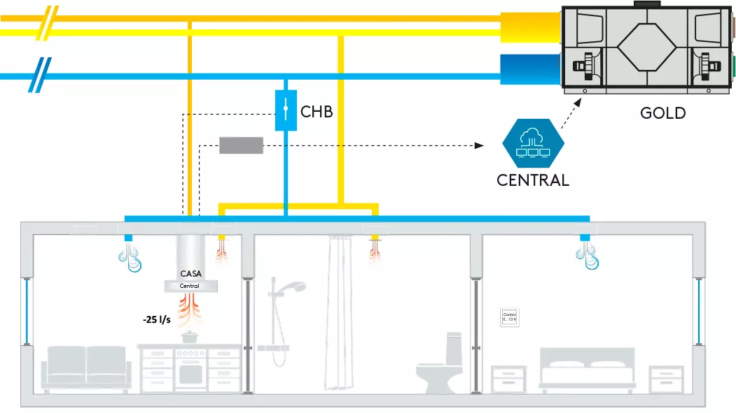 • Balances the negative pressure caused by boosting the Central cooker hood and from general ventilation