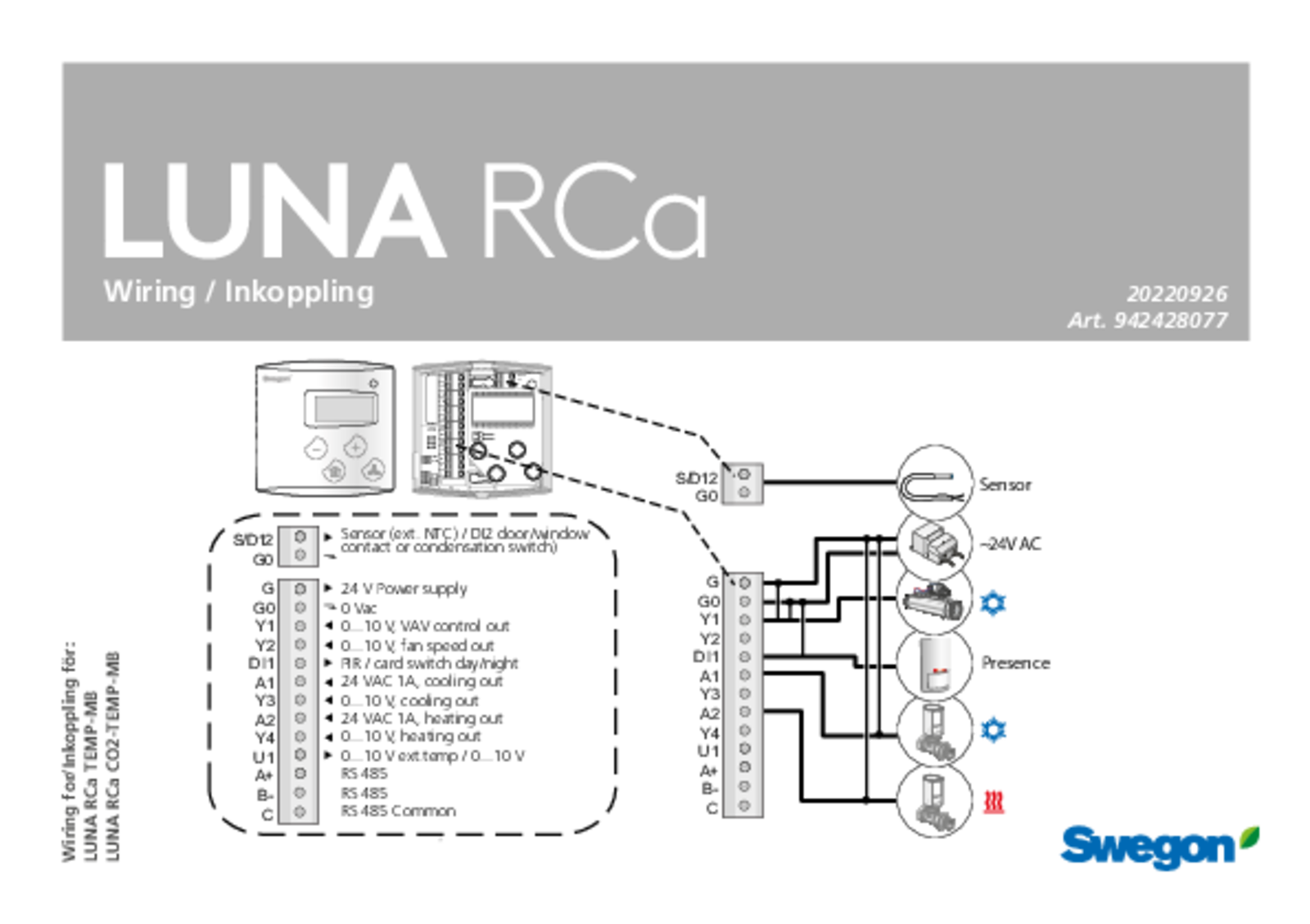 • Inputs for condensation sensor or occupancy sensor