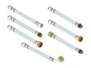 Flexible connecting hoses for water are available for flat-end pipes and valves, and can be ordered separately.