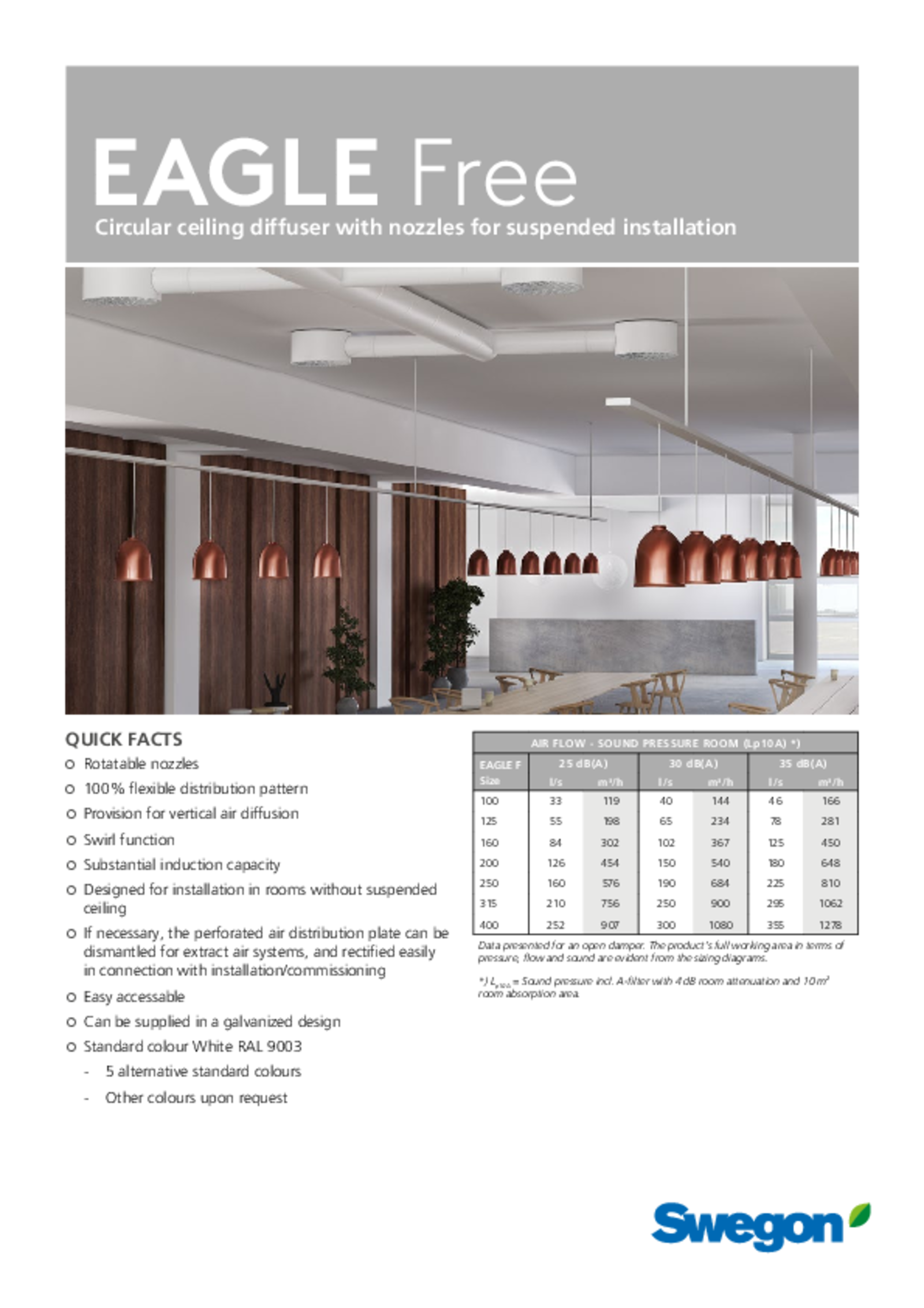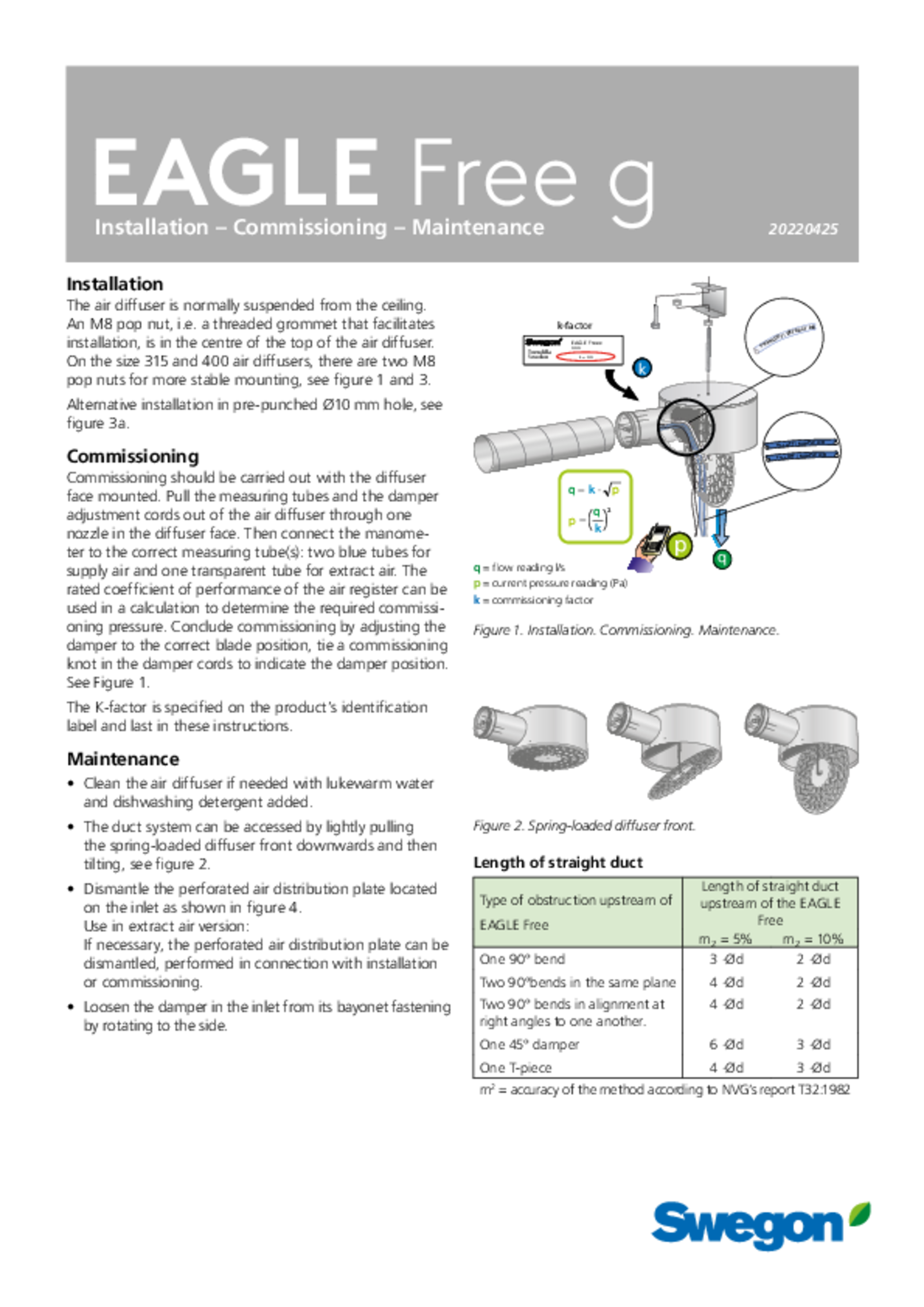 - If necessary, the perforated air distribution plate can be dismantled for extract air systems, and rectified easily in connection with installation/commissioning
