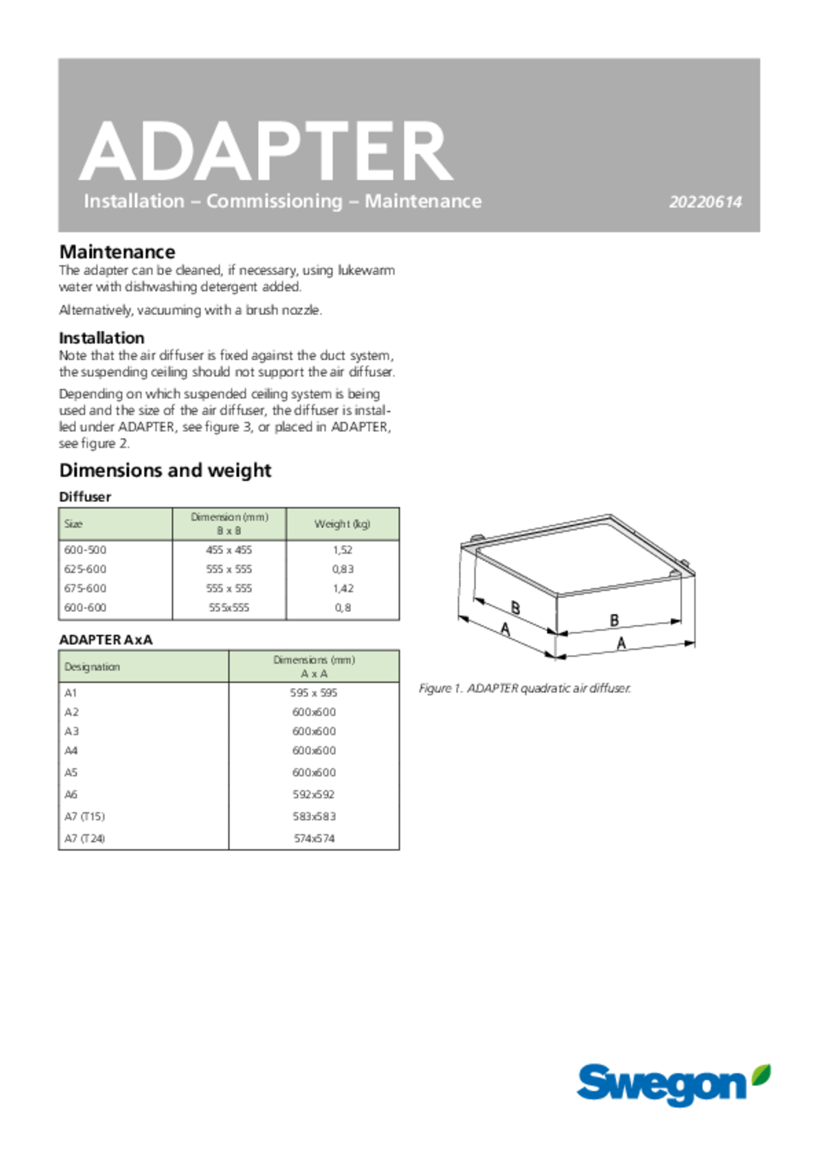 - ADAPTER is used together with air diffusers from the Ceiling Collection range