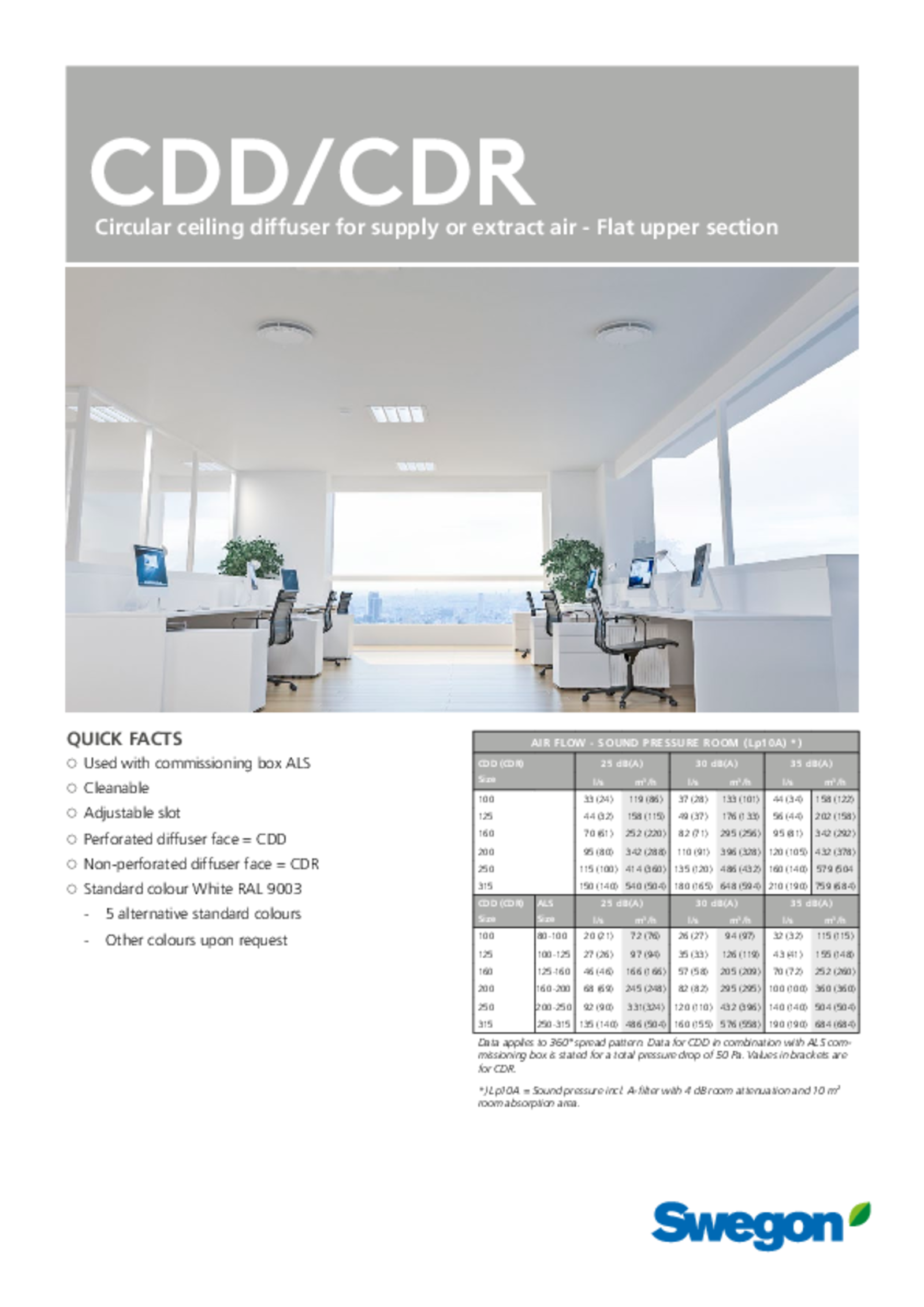 - Non-perforated diffuser face = CDR