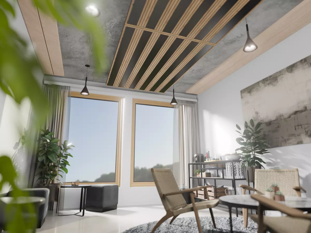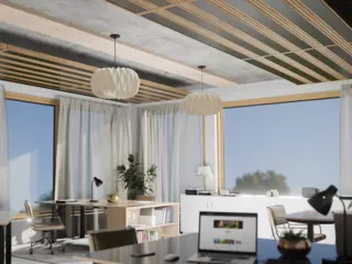 The real wood slats are not only visually appealing, but also acoustically active, ensuring pleasant room acoustics. The high-performance heat-conducting profiles are circulated by the room air and enable efficient climate control - both for heating and cooling.