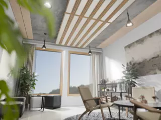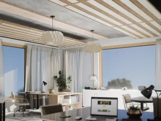 The high-performance module SOFTLINE WOOD is a climate ceiling system that combines the natural aesthetics of real wood with high-performance heat conducting profiles to create an optimum indoor climate.