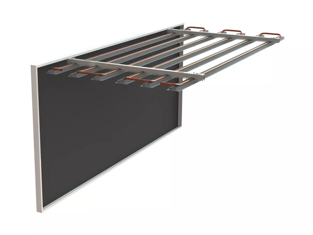 The SPECTRA M coil is ideal for refurbishing buildings in which existing metal ceilings are to be activated at a later stage. Furthermore, the coils can be fitted and hydraulically connected independently of the ceiling panels, meaning that the cooling technology can be installed and commissioned before the surface is finished. This also enables operation of the coils in advance for construction heating.