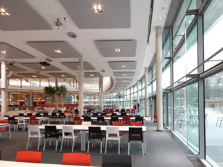 In order to satisfy the acoustic requirements, acoustic fleece is bonded in the back of the ceiling panels. In particularly sensitive areas, additional insulation strips can be inserted at the side of the coil to increase sound absorption without reducing the cooling capacity.
